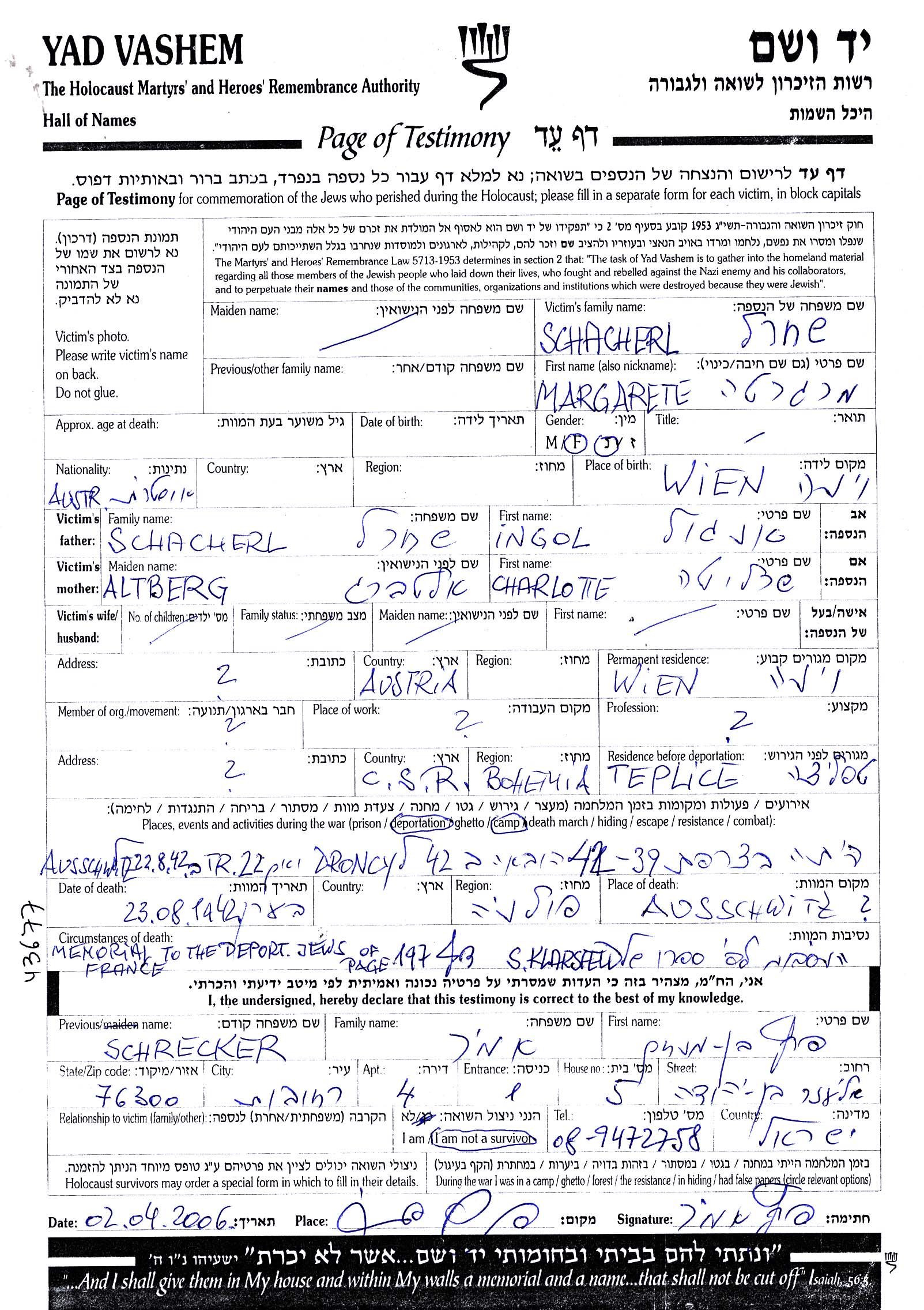 Schacherl Margarete Grete 1898 Praha, צ'כוסלובקיה דף-עד