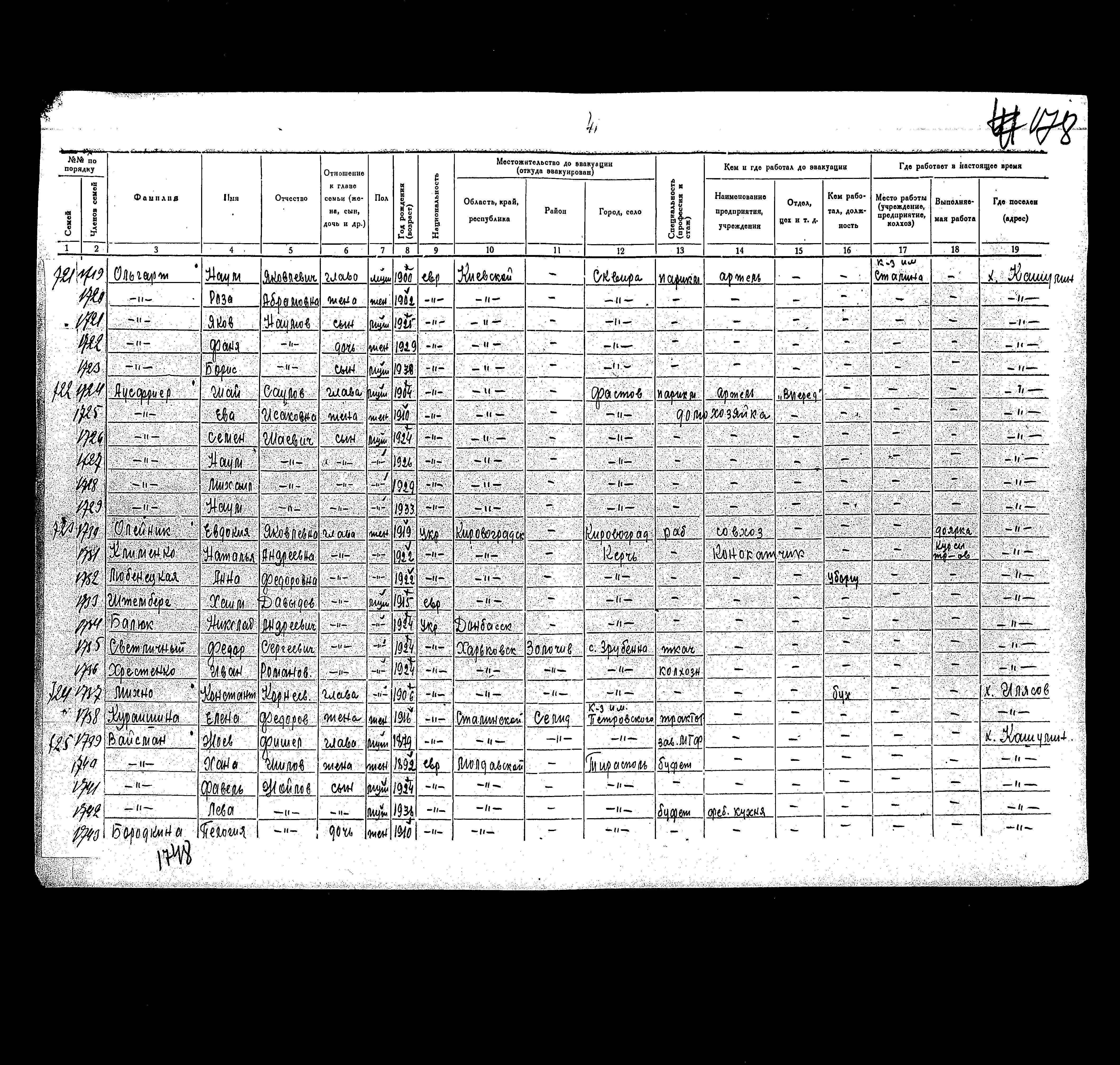 רשימת תושבים שפונו לנפת Rakovskiy, שהוכנה בשנת 1942