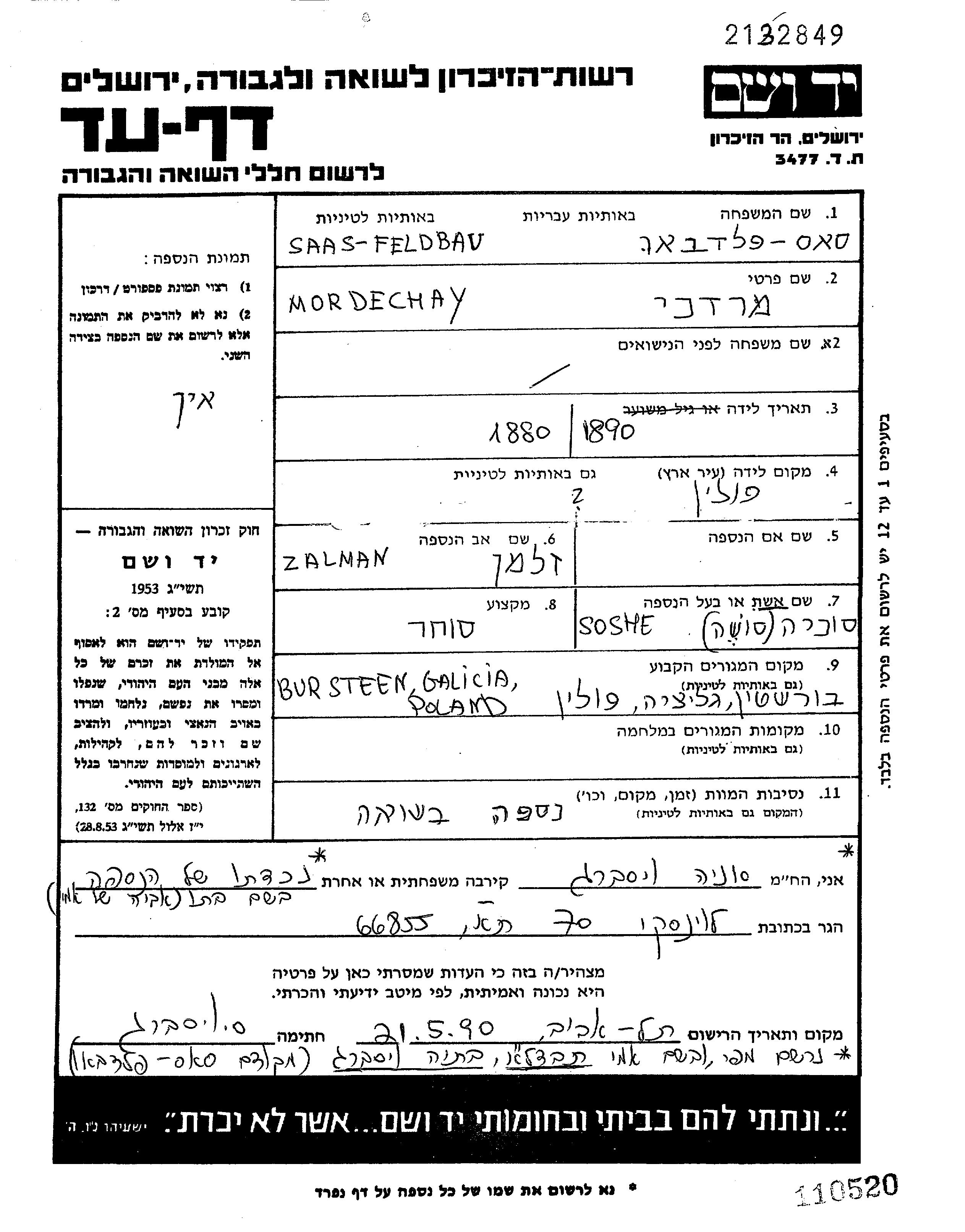 חיפוש שם מוסר דף העד. חיפוש לפי כל שם פרטי, כולל כינוי או שם חיבה