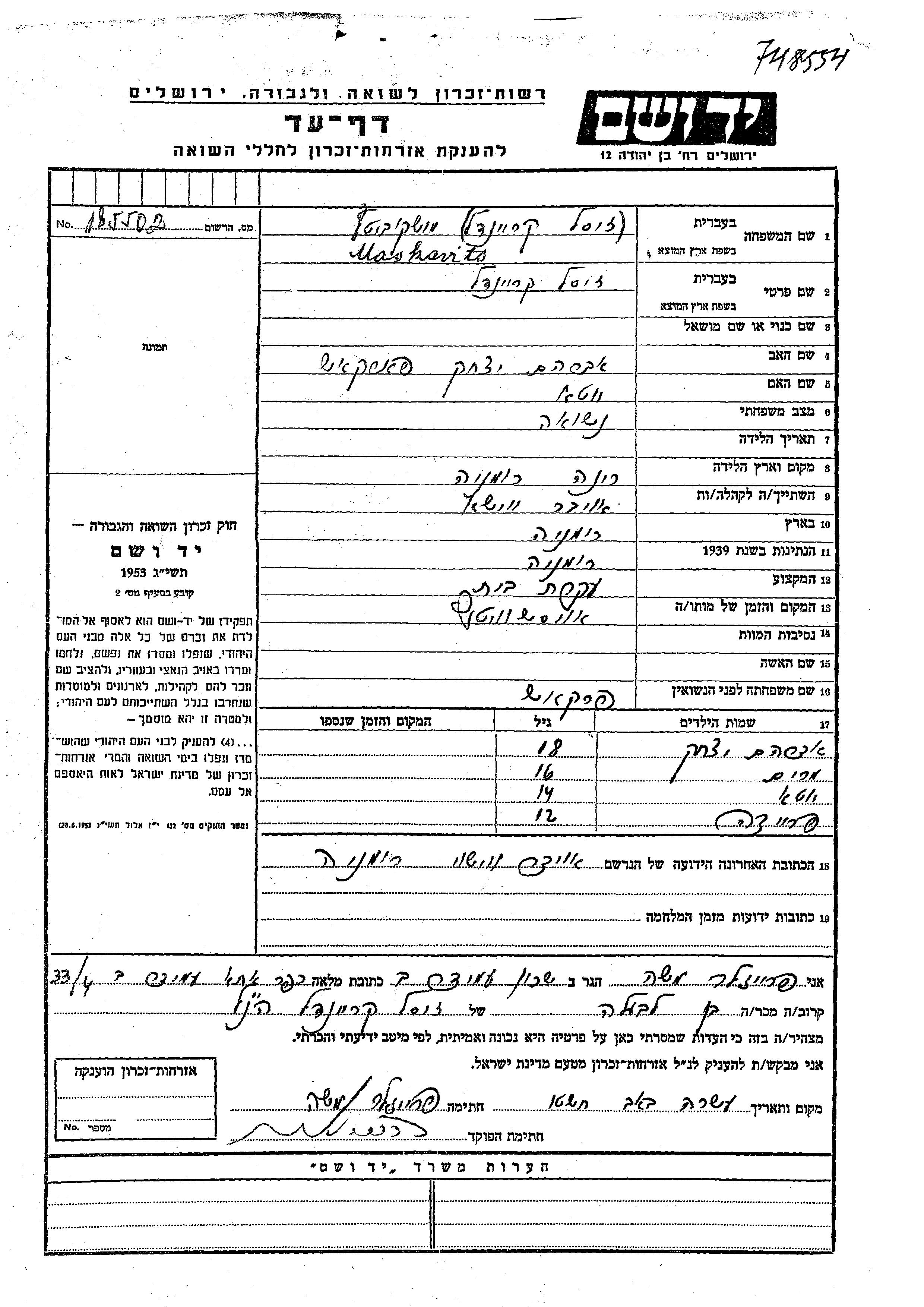 יד ושם - המפעל להנצחת השמות בדפי עד