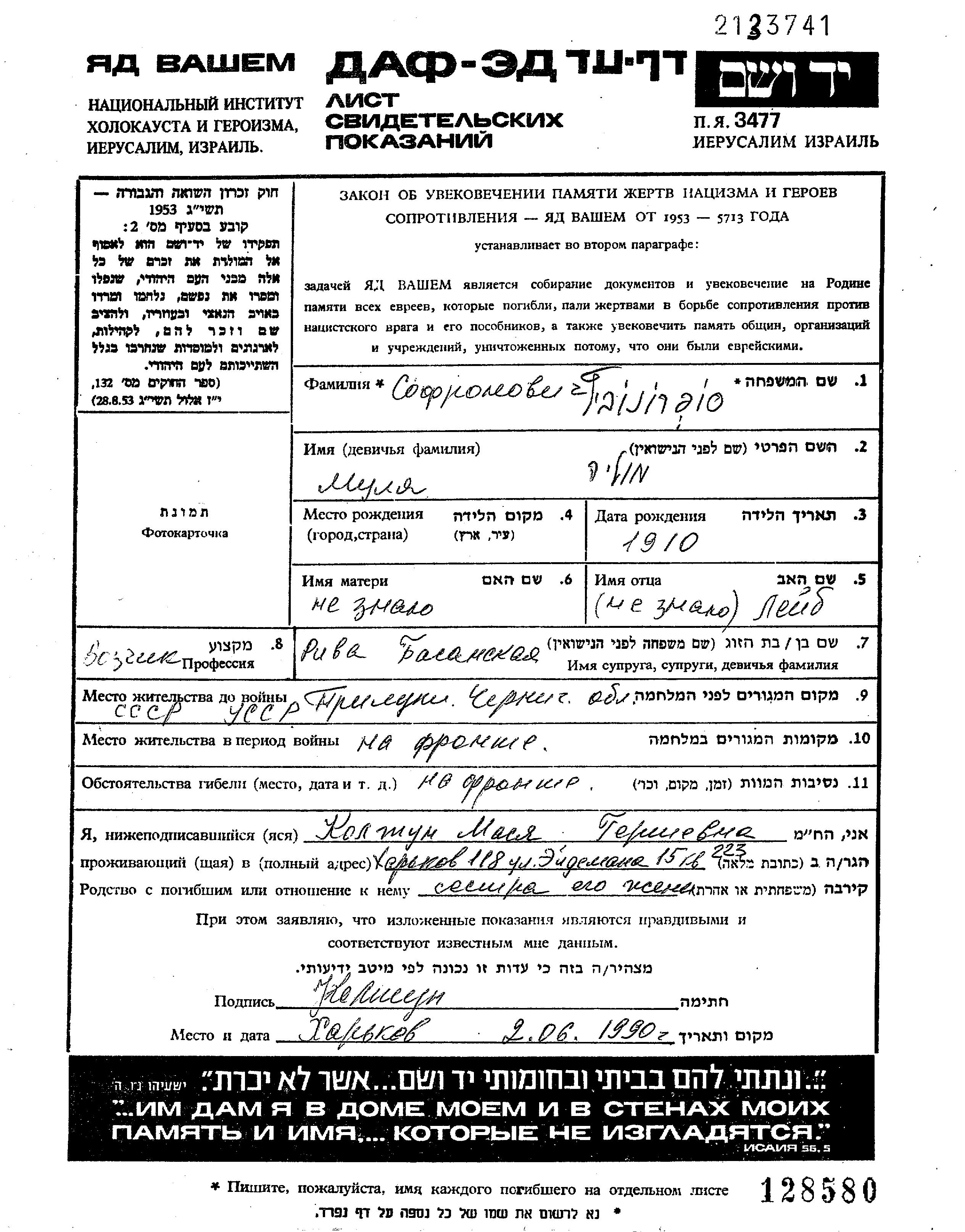 חיפוש שם מוסר דף העד. חיפוש לפי כל שם פרטי, כולל כינוי או שם חיבה