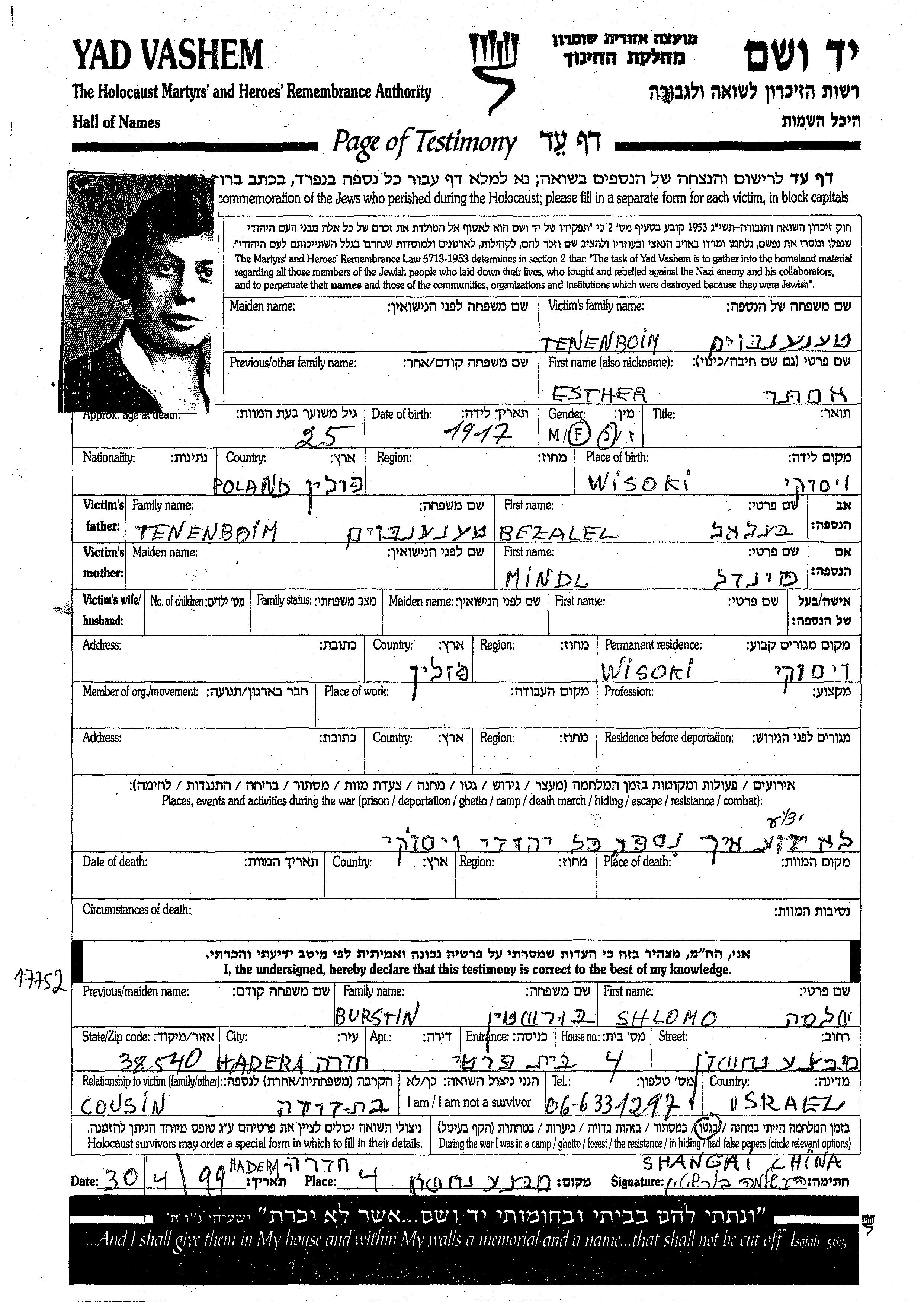 Tenenboim אסתר 1917 Wysokie Mazowieckie, פולין דף-עד