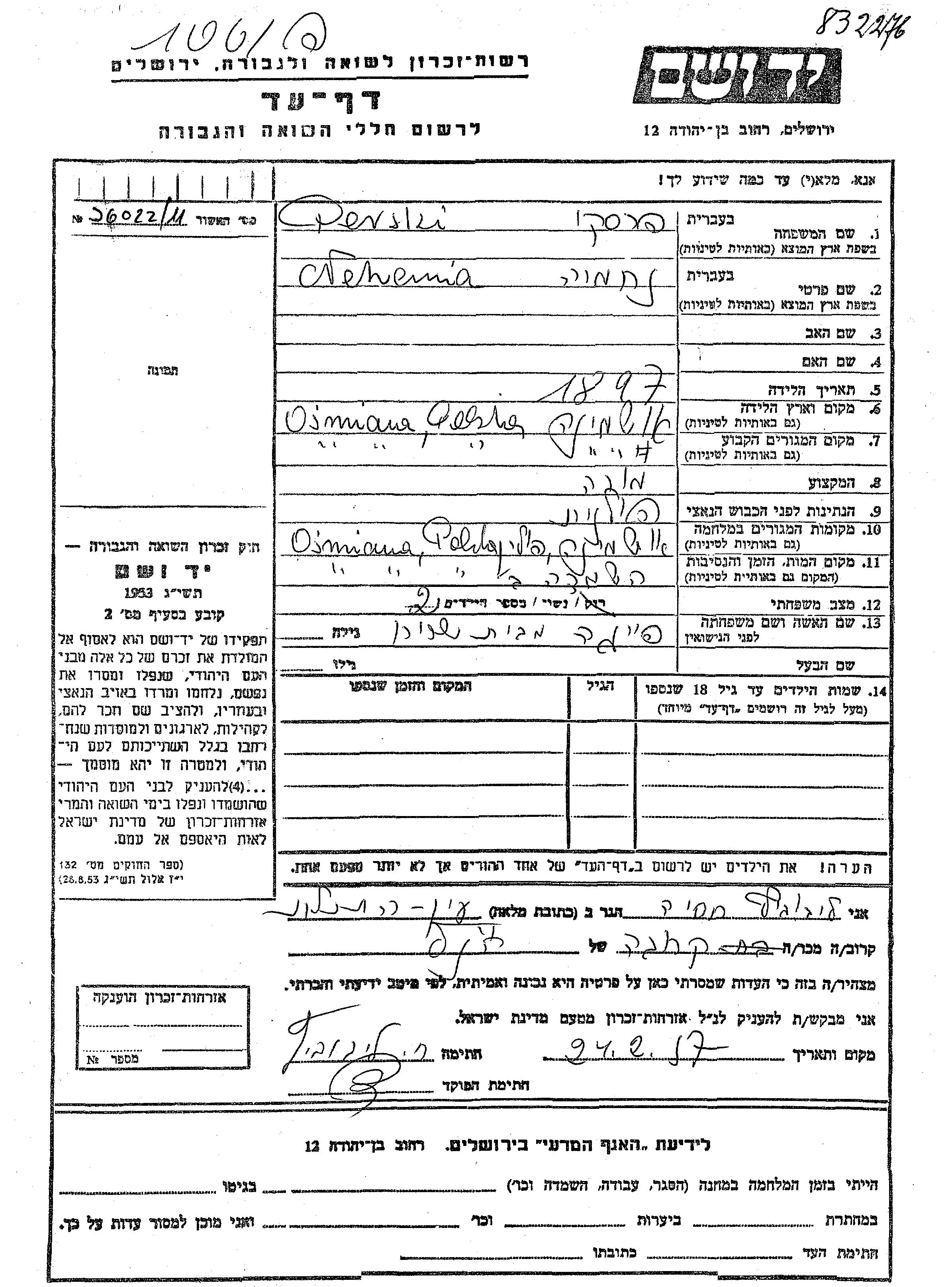 יד ושם - המפעל להנצחת השמות בדפי עד