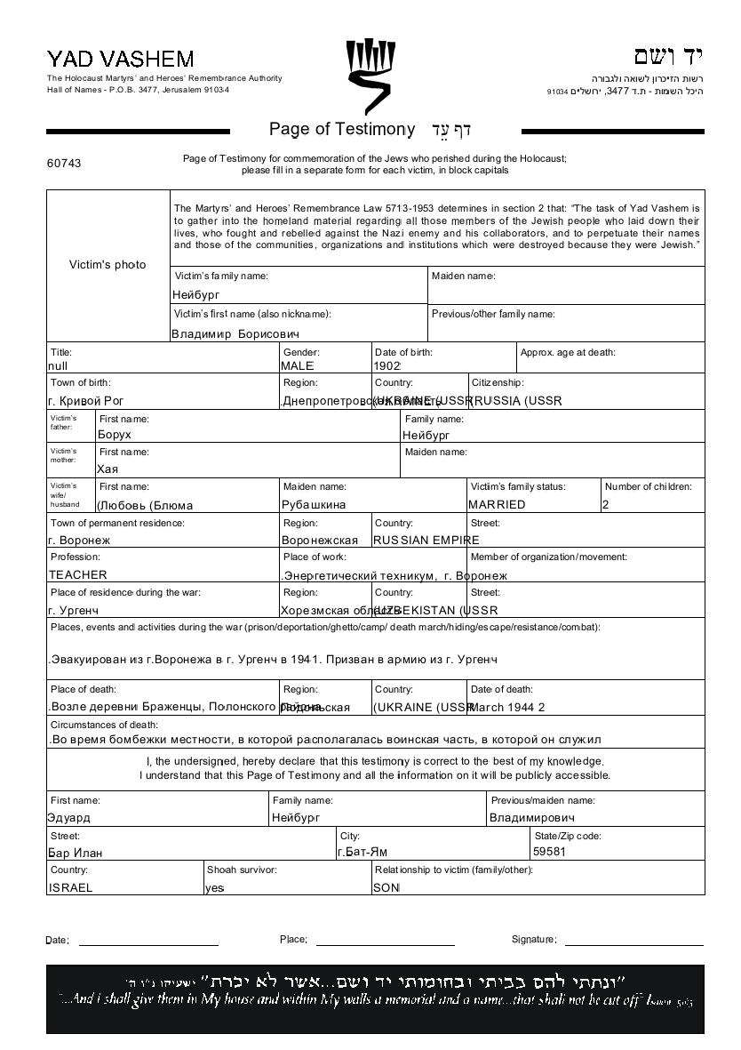 חיפוש שם מוסר דף העד. חיפוש לפי כל שם פרטי, כולל כינוי או שם חיבה