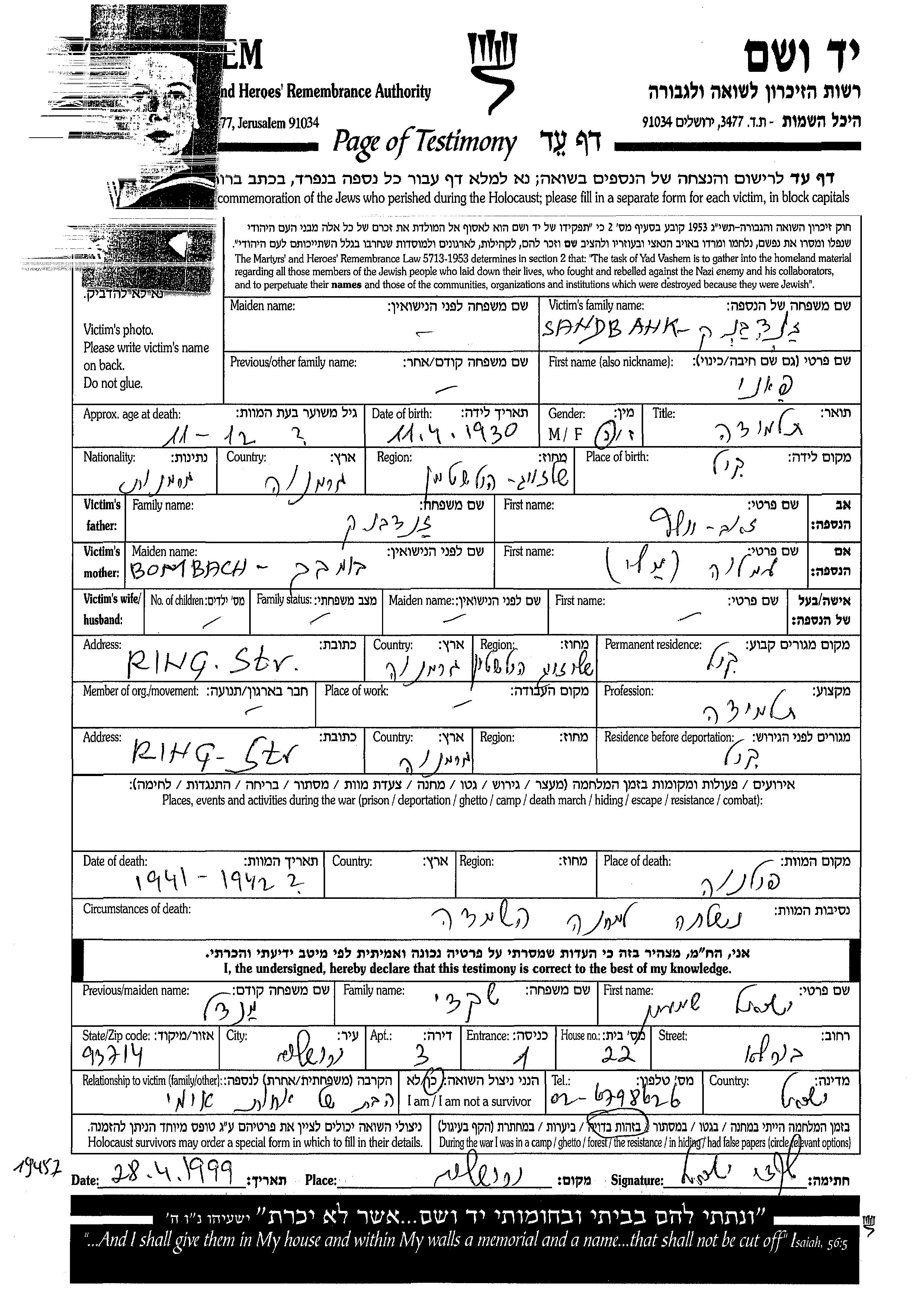 יד ושם - המפעל להנצחת השמות בדפי עד