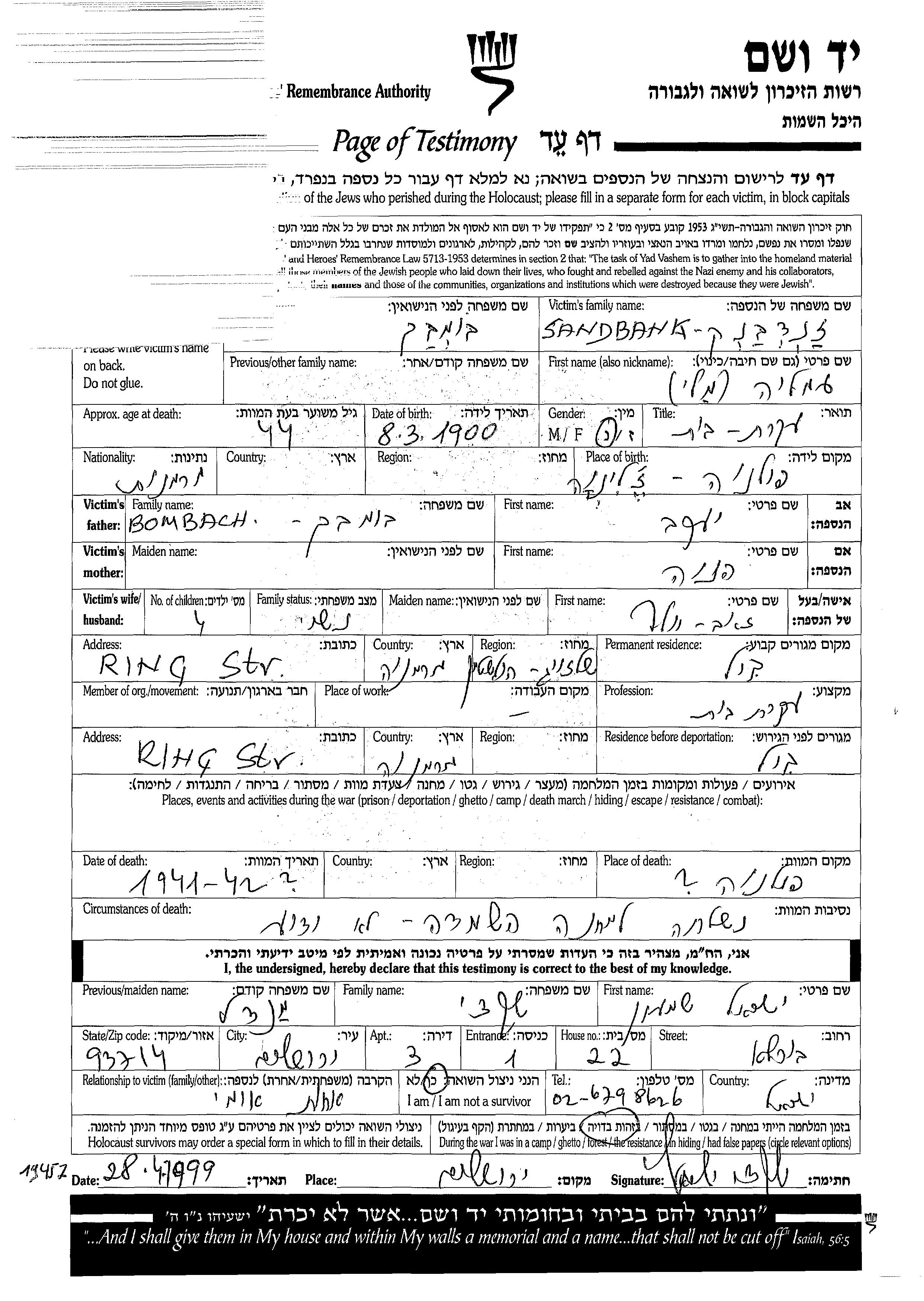 יד ושם - המפעל להנצחת השמות בדפי עד