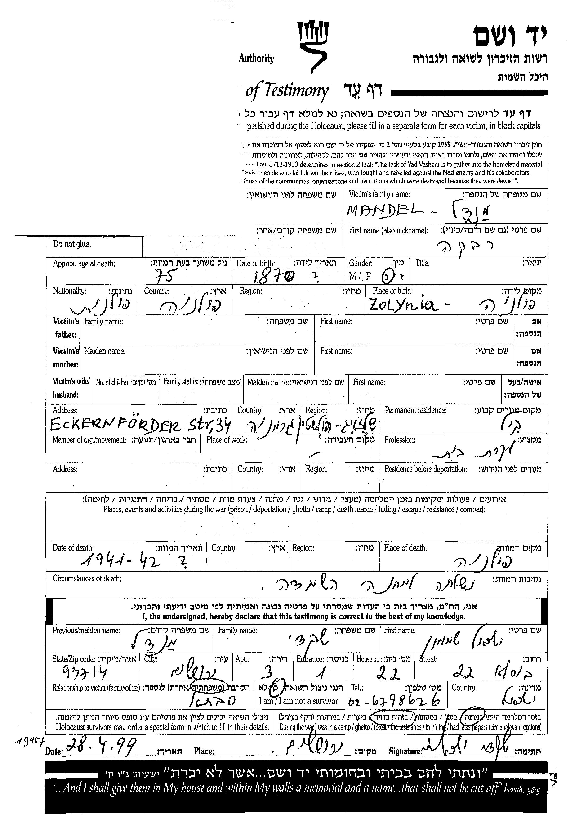 יד ושם - המפעל להנצחת השמות בדפי עד