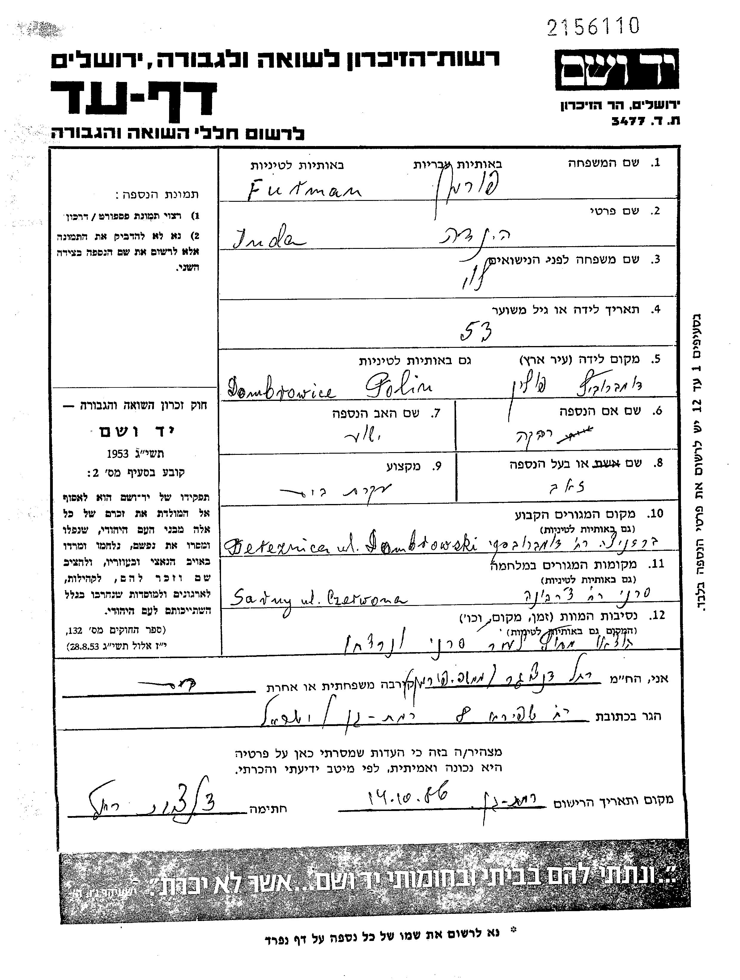 יד ושם - המפעל להנצחת השמות בדפי עד