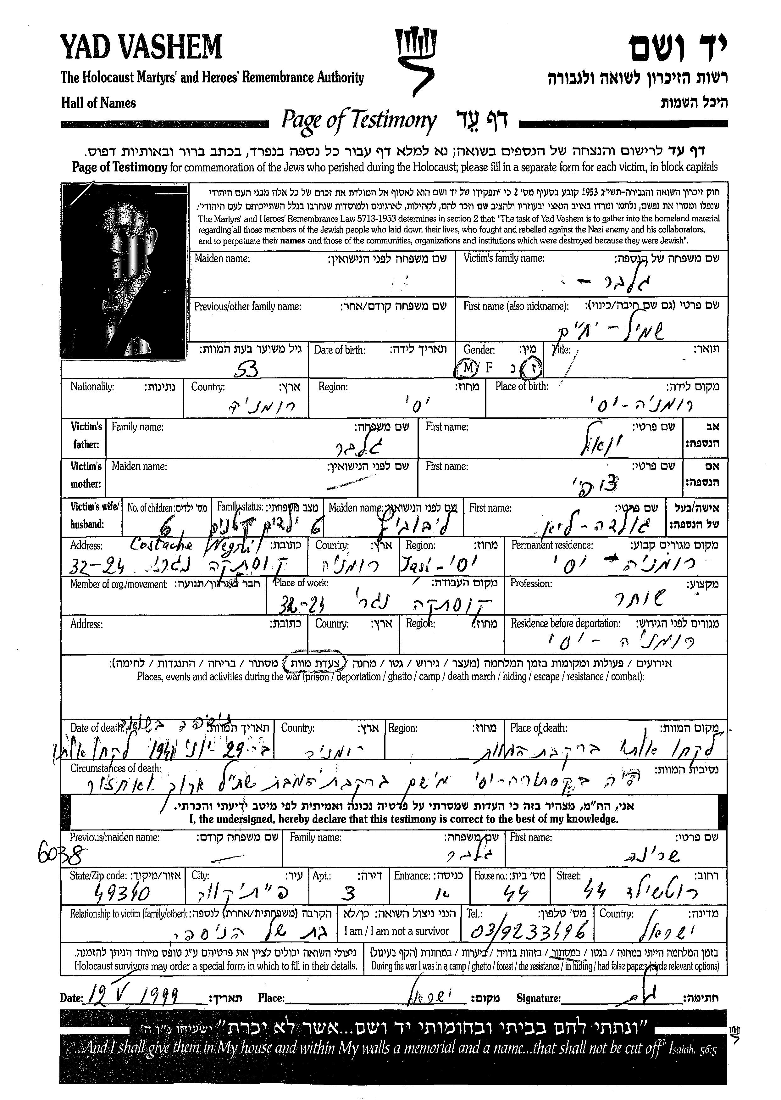 יד ושם - המפעל להנצחת השמות בדפי עד