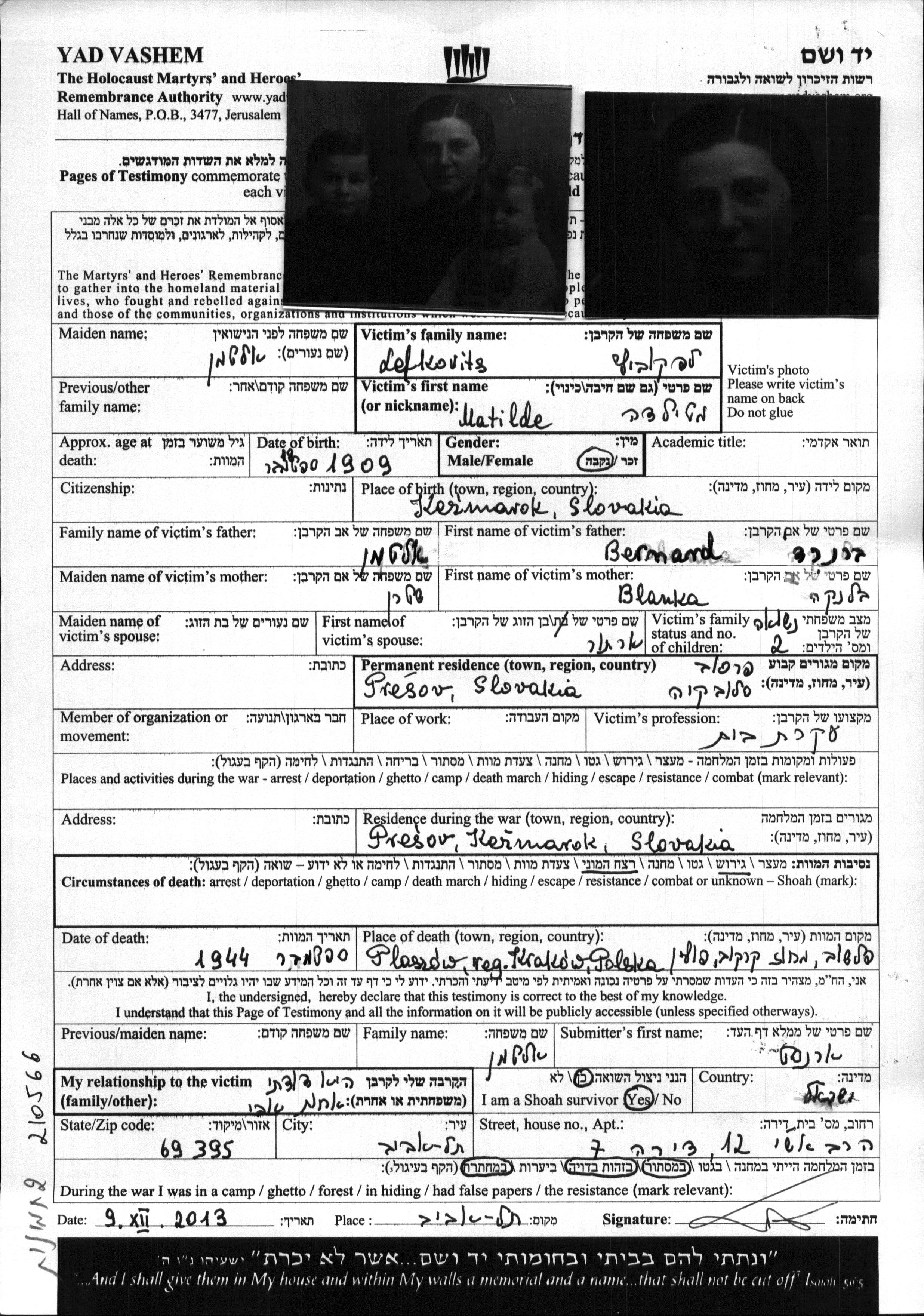 Lefkovits Matilde 1909 Presov, צ'כוסלובקיה דף-עד