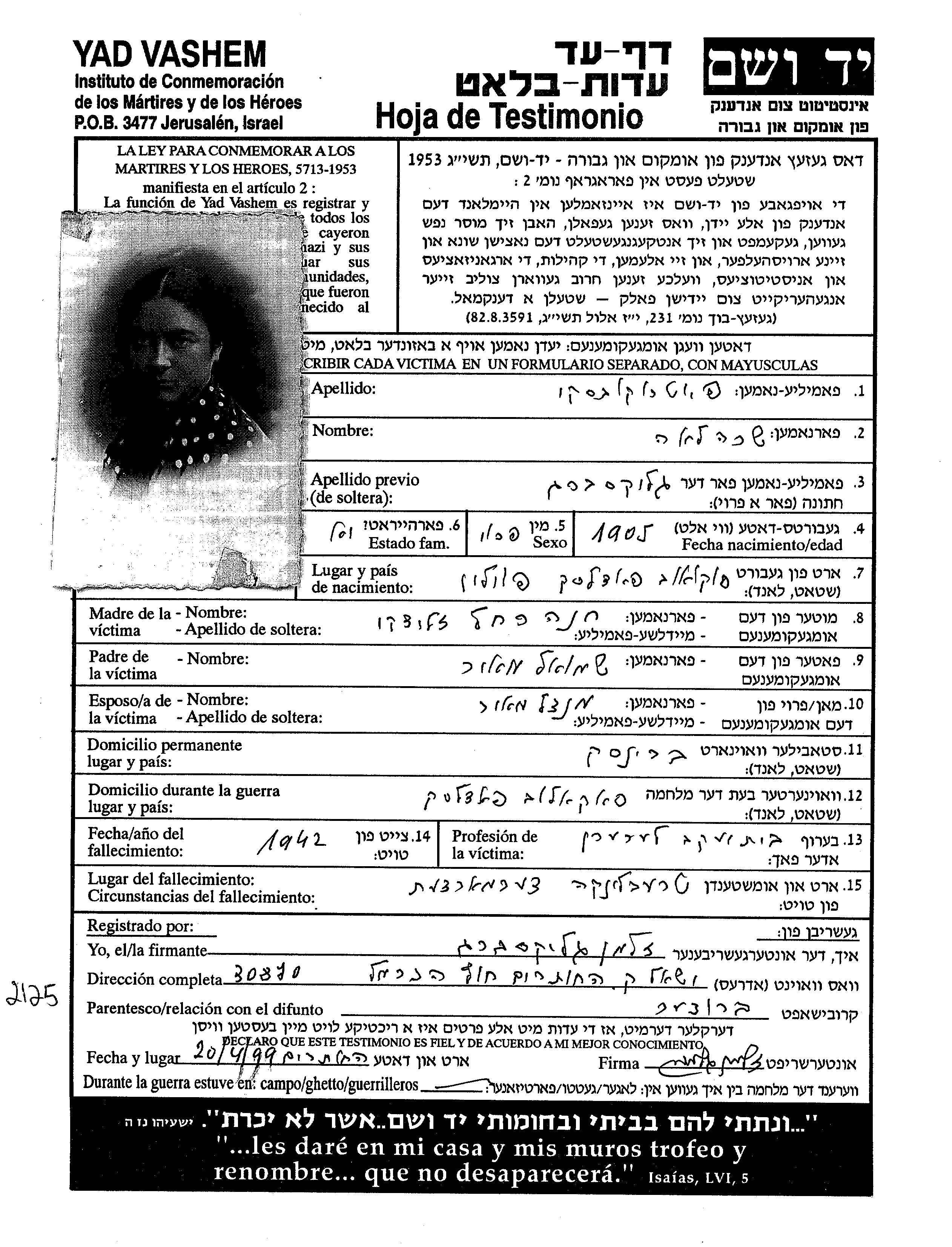 יד ושם - המפעל להנצחת השמות בדפי עד