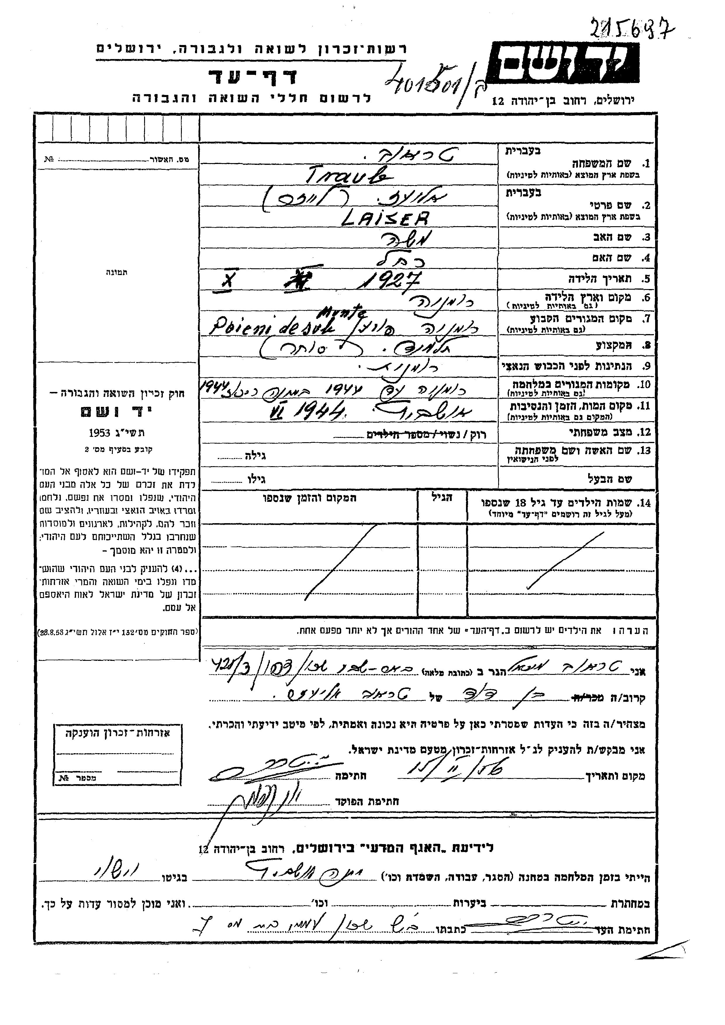 יד ושם - המפעל להנצחת השמות בדפי עד
