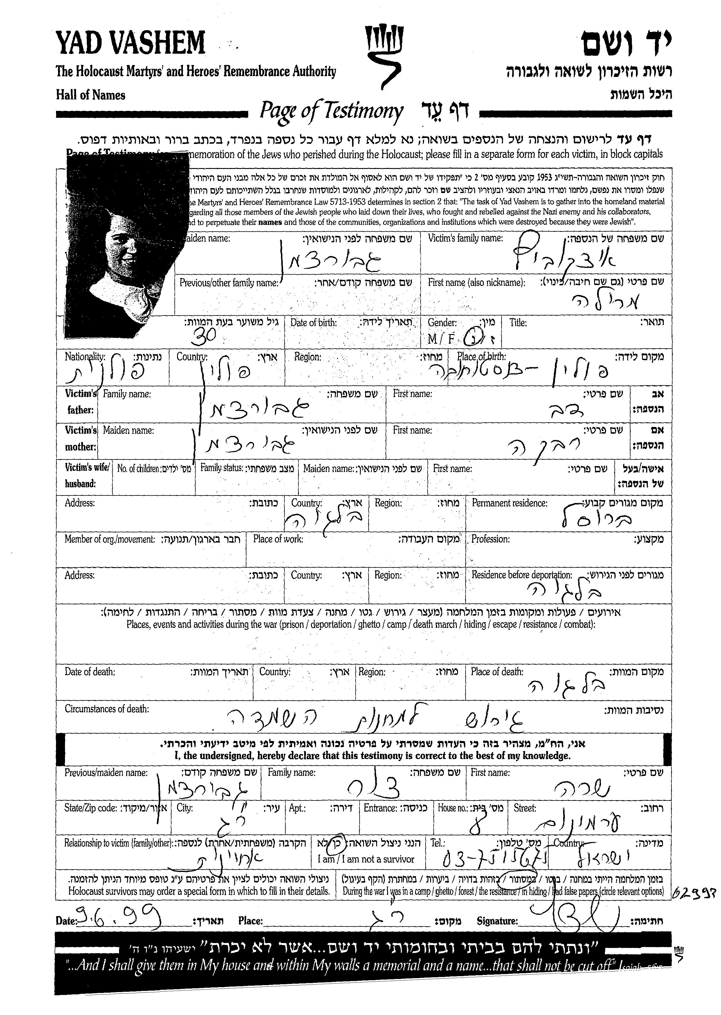 יד ושם - המפעל להנצחת השמות בדפי עד