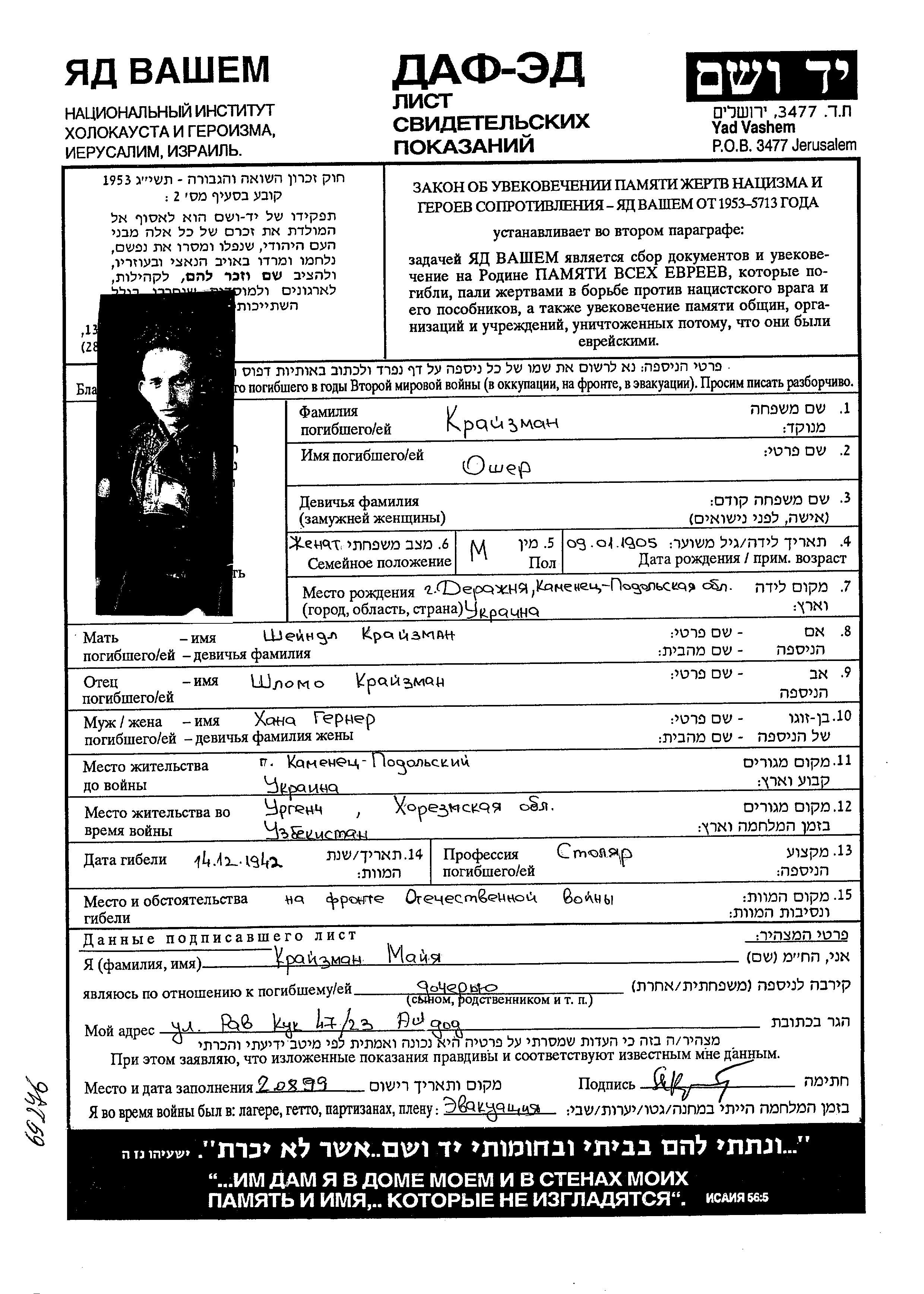 חיפוש שם מוסר דף העד. חיפוש לפי כל שם פרטי, כולל כינוי או שם חיבה