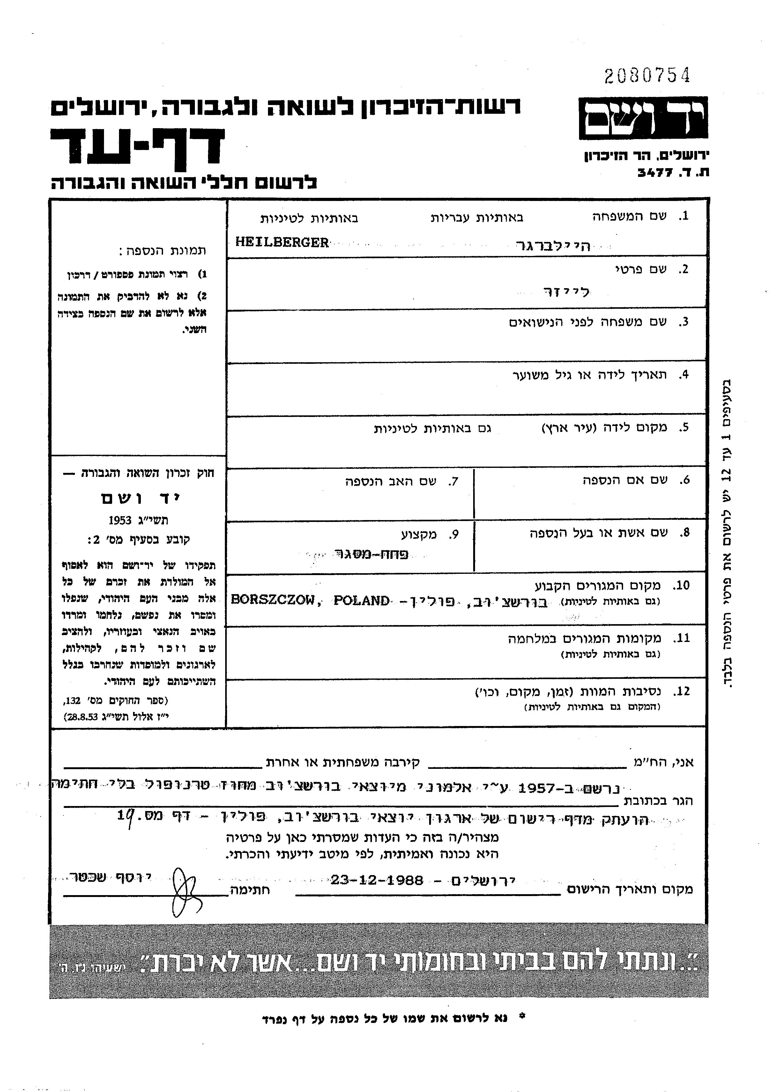 יד ושם - המפעל להנצחת השמות בדפי עד