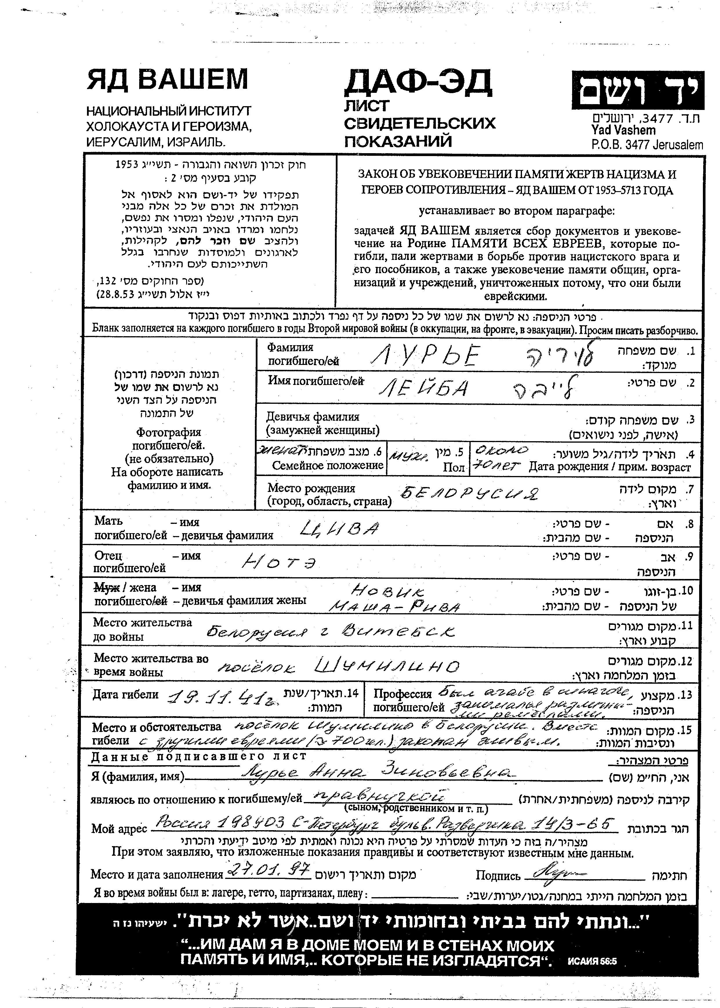 לוריא | לייבה | Vitebsk, ביאלורוסיה (ברה"מ) | דף-עד | |