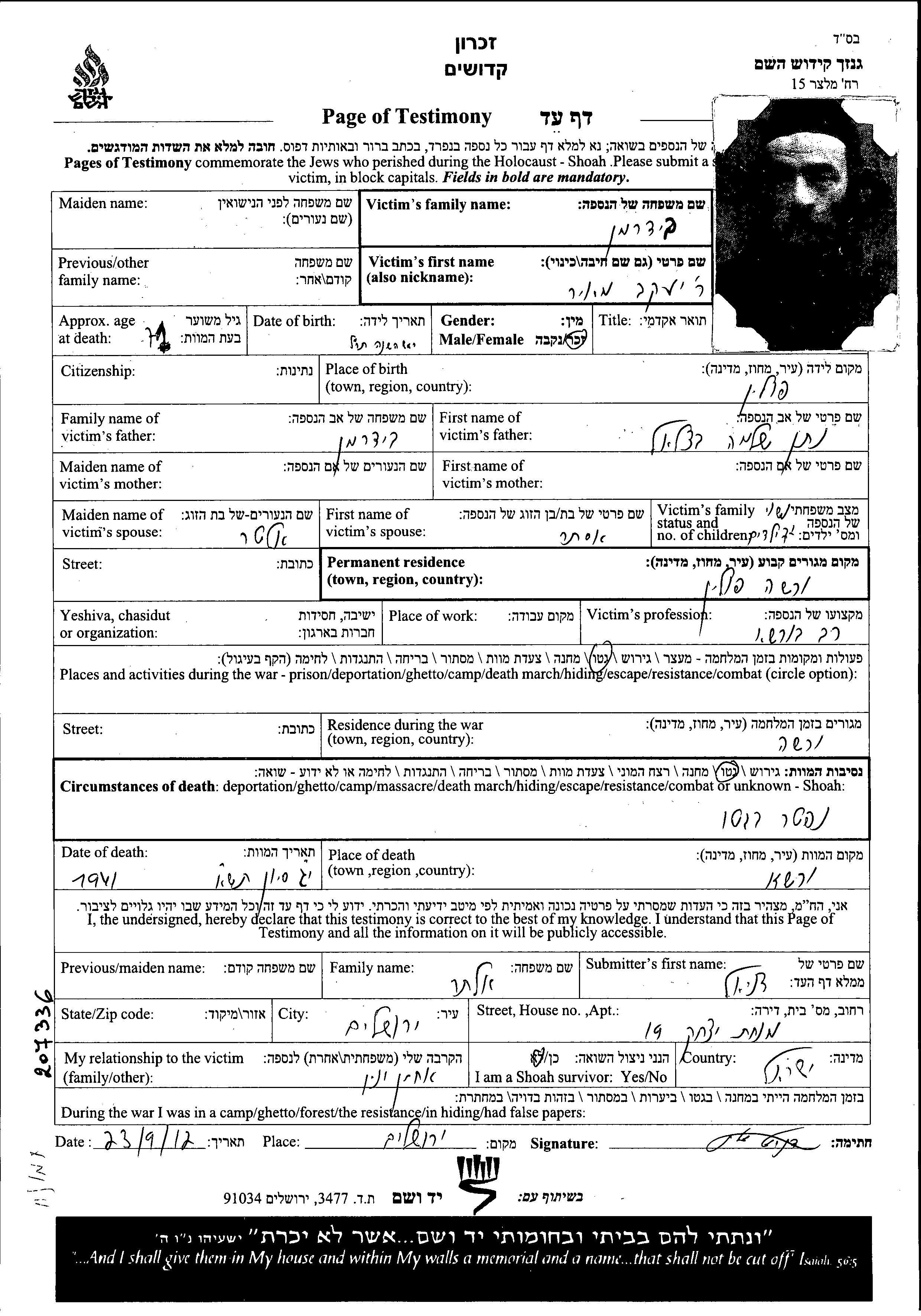 חיפוש שם מוסר דף העד. חיפוש לפי כל שם פרטי, כולל כינוי או שם חיבה