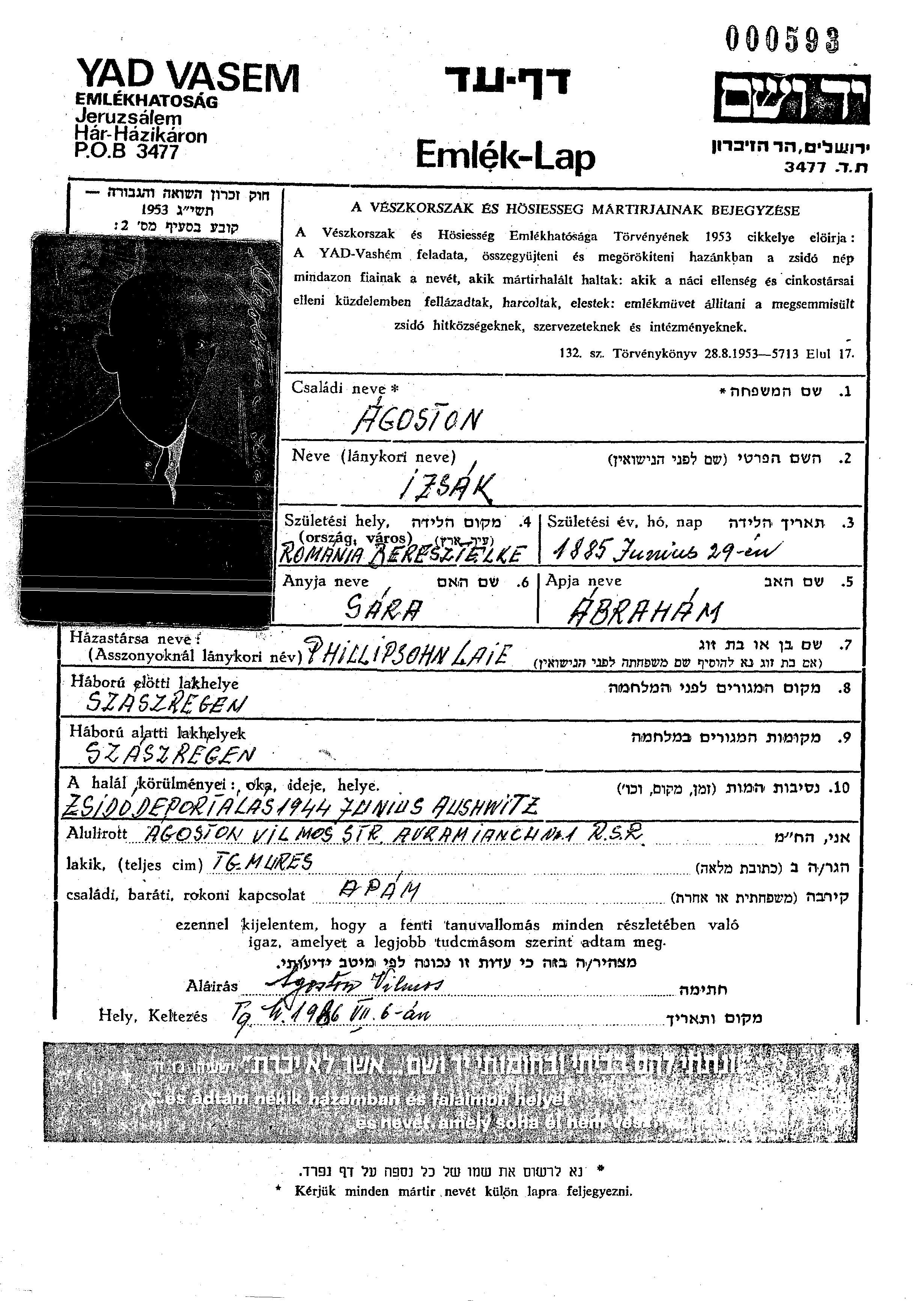 עיר/כפר, גטו/מחנה או אתר רצח או מחוז/אזור או מדינה. שם מקום ניתן לחפש רק בא-ב לטיני.