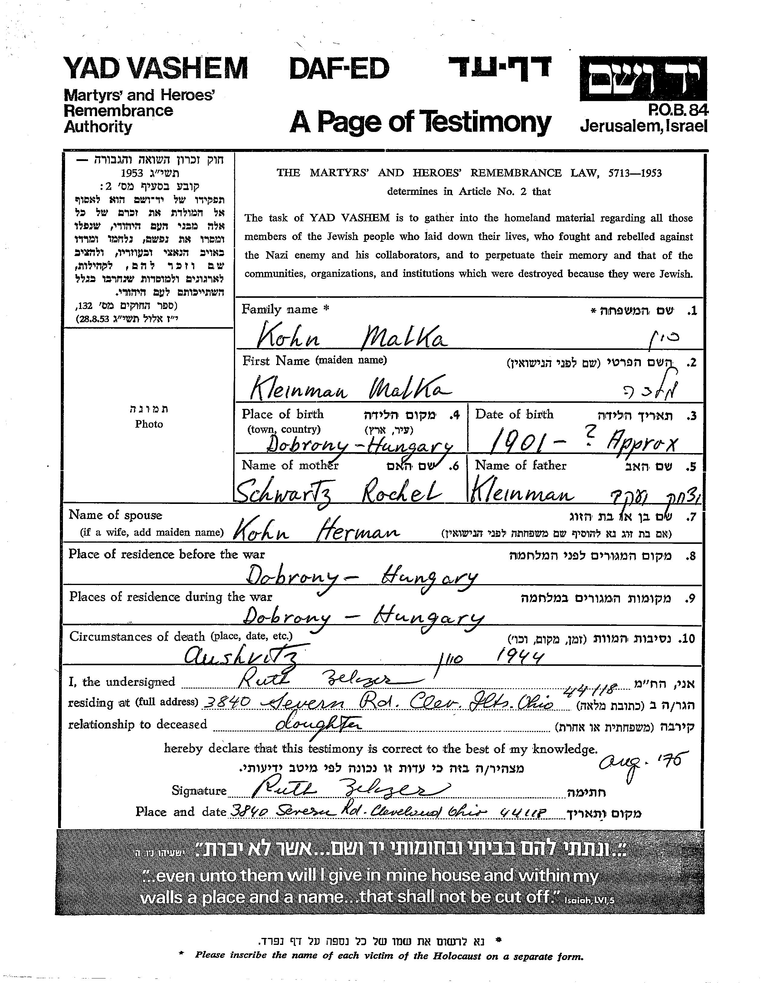 Search by name of any place during the Holocaust period: Town,Village, Camp, Ghetto, District, Region or Country