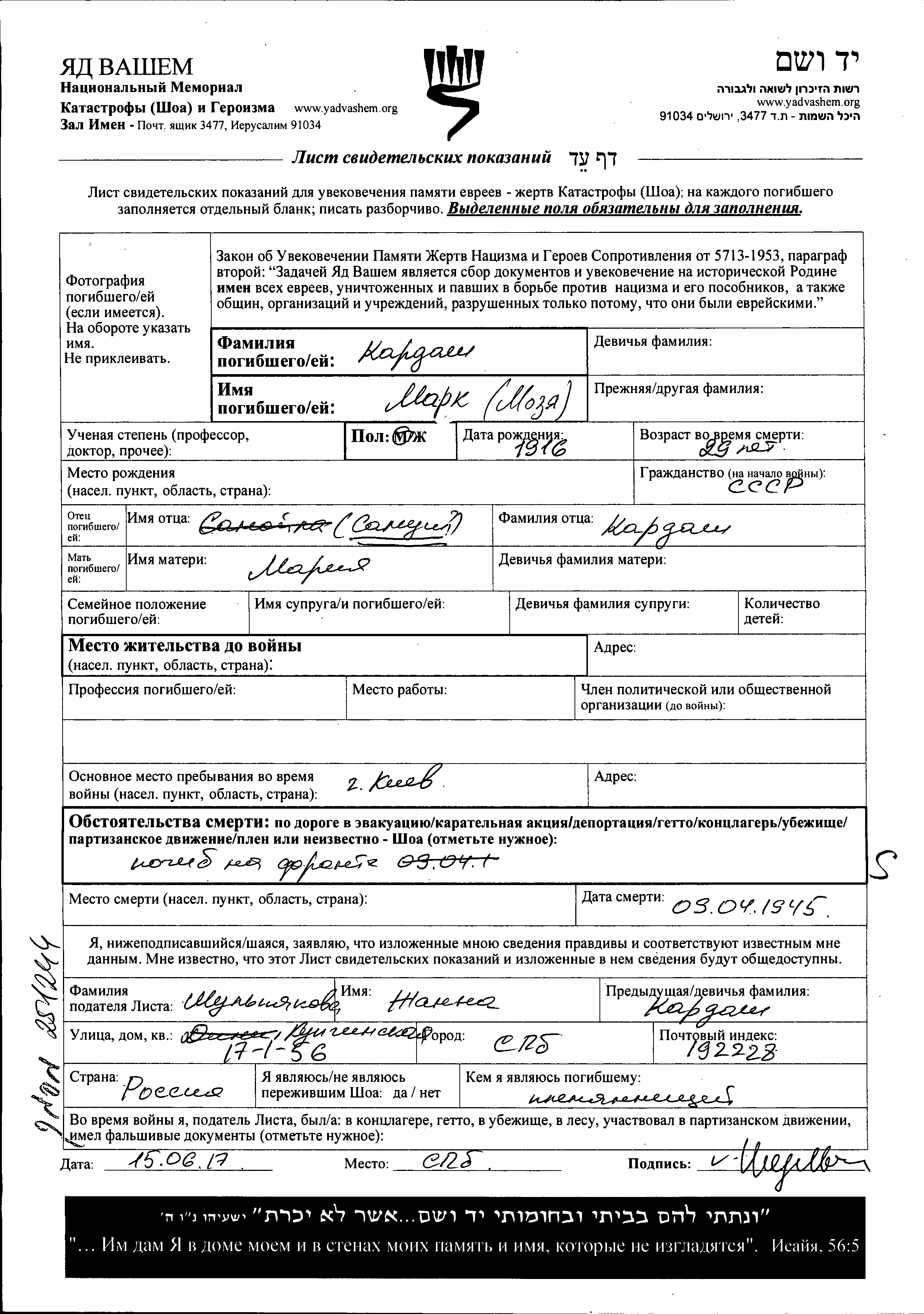 חיפוש שם מוסר דף העד. חיפוש לפי כל שם פרטי, כולל כינוי או שם חיבה