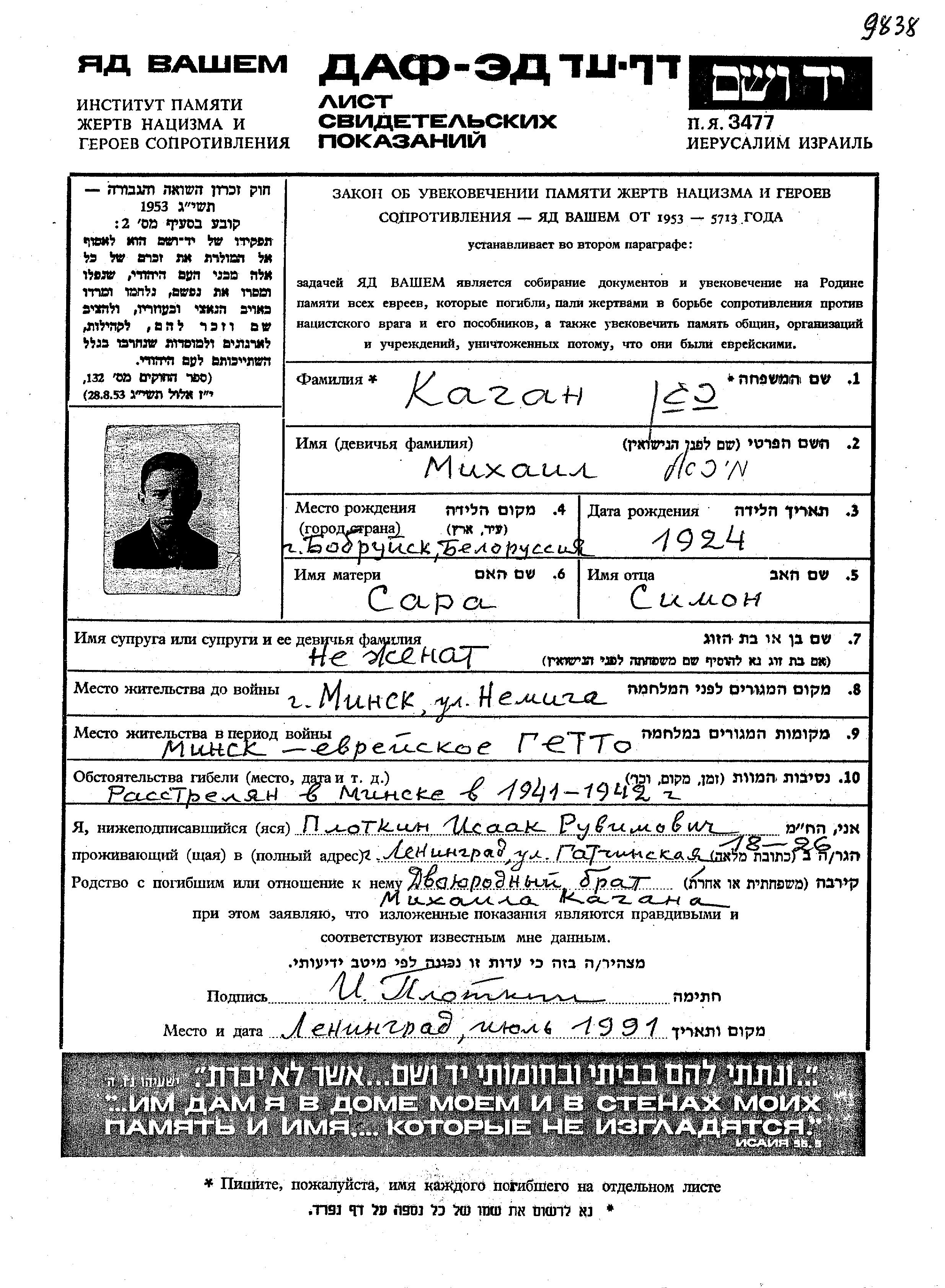 יד ושם - המפעל להנצחת השמות בדפי עד