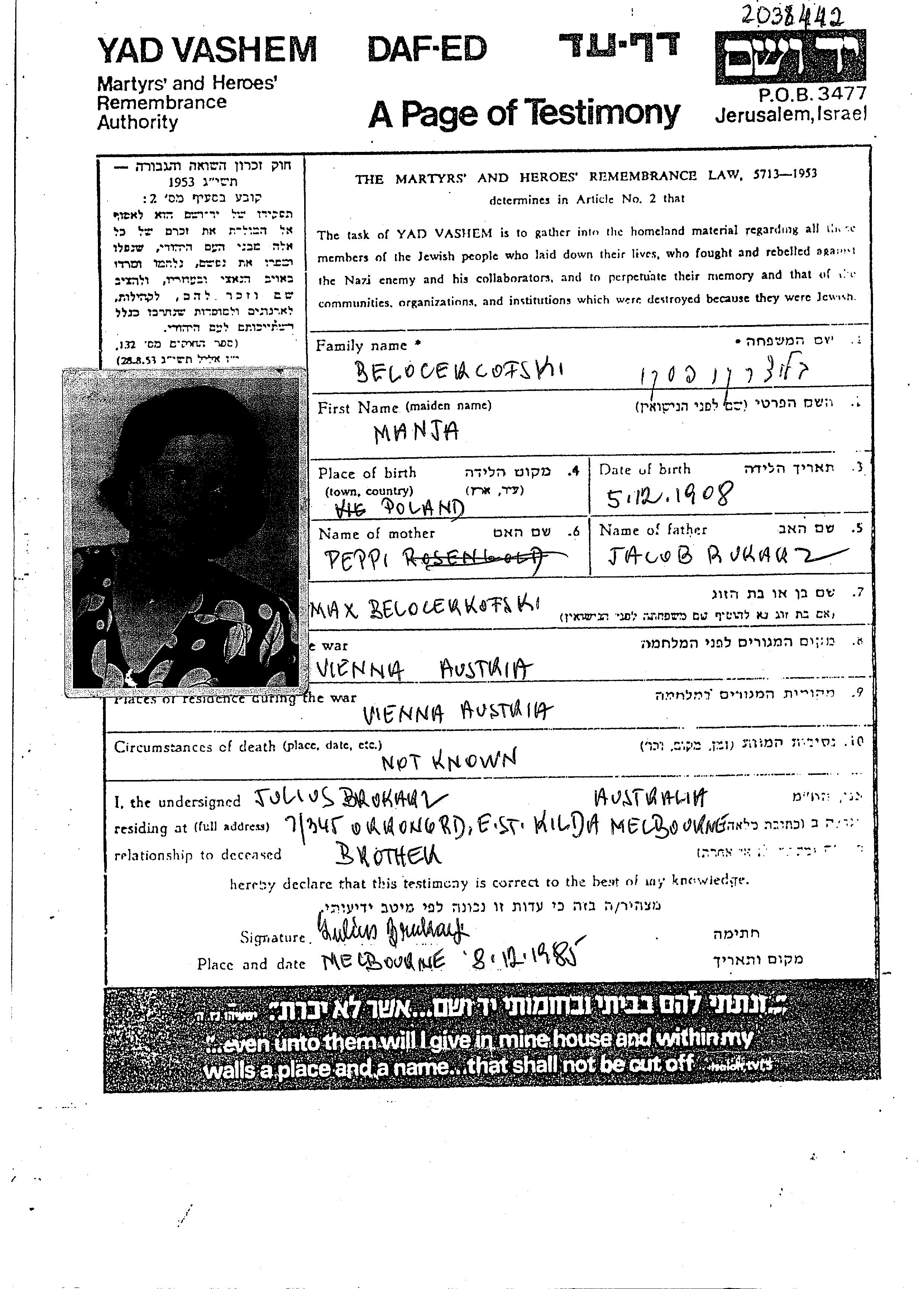 | Belocercofski | Manja | 1908 | Wien, אוסטריה | Photos |