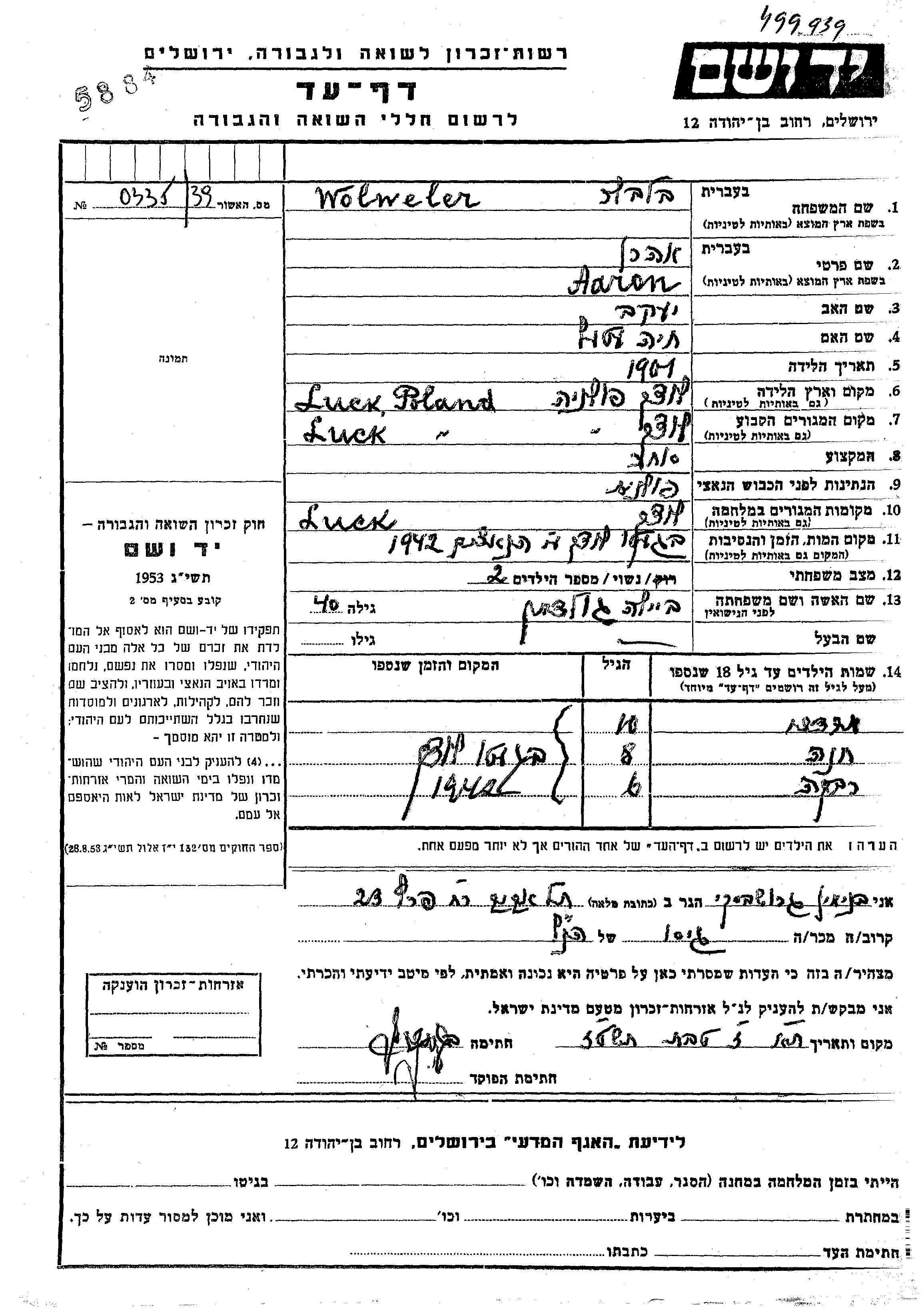Wolweler Aaron 1901 Luck, פולין דף-עד