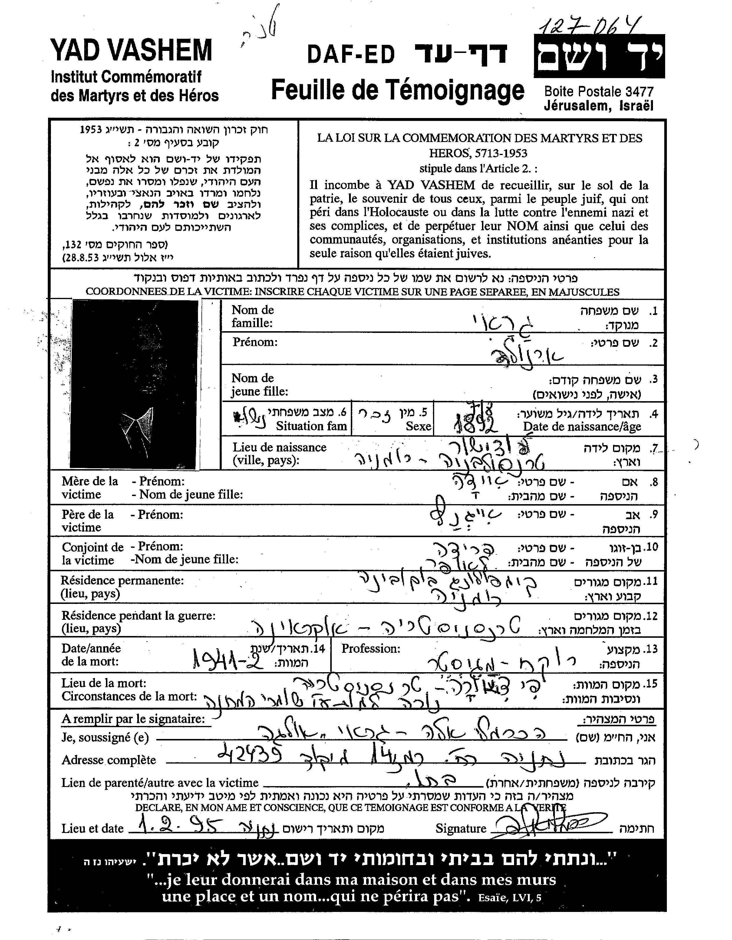 עיר/כפר, גטו/מחנה או אתר רצח או מחוז/אזור או מדינה. שם מקום ניתן לחפש רק בא-ב לטיני.