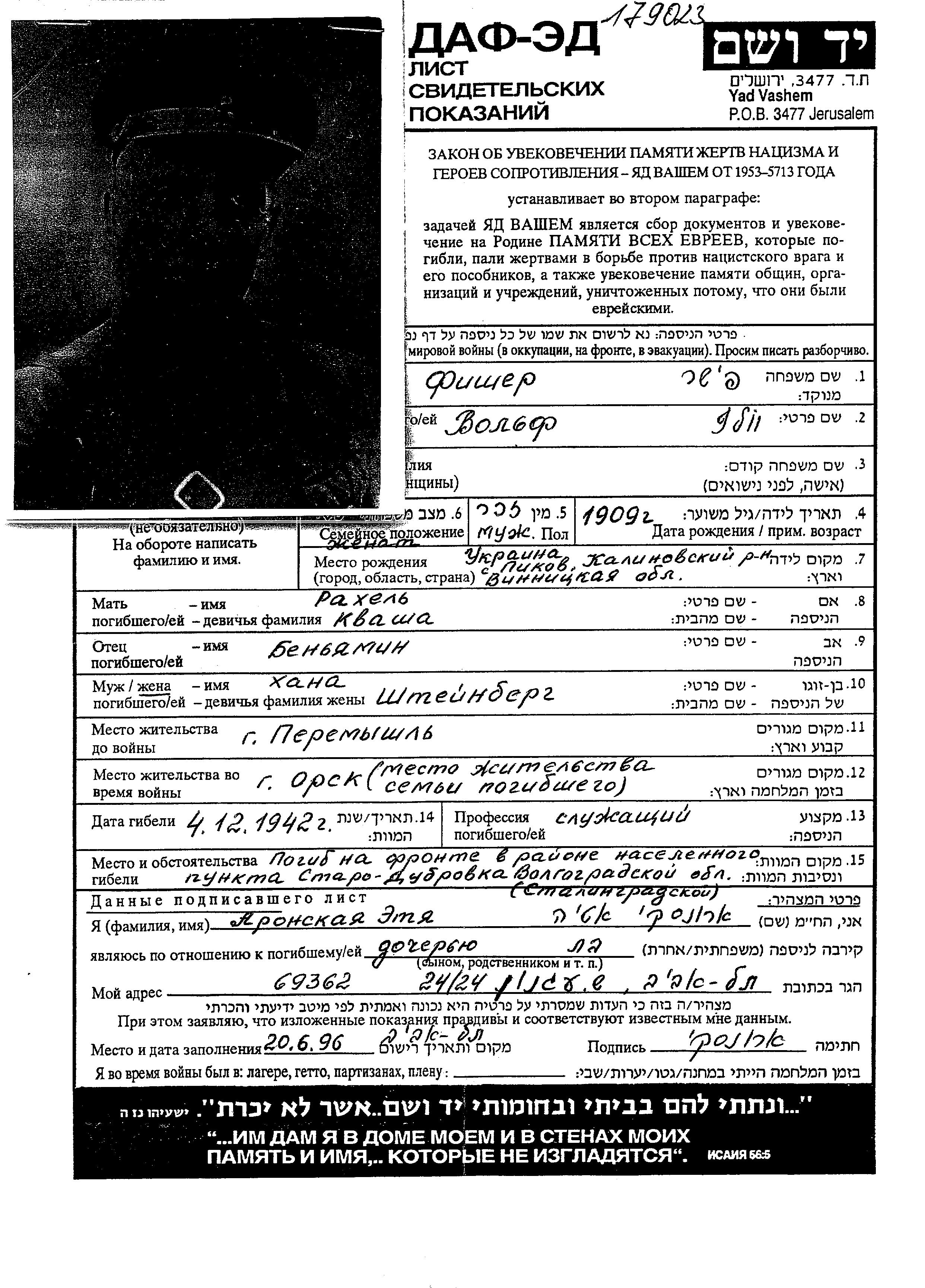 יד ושם - המפעל להנצחת השמות בדפי עד