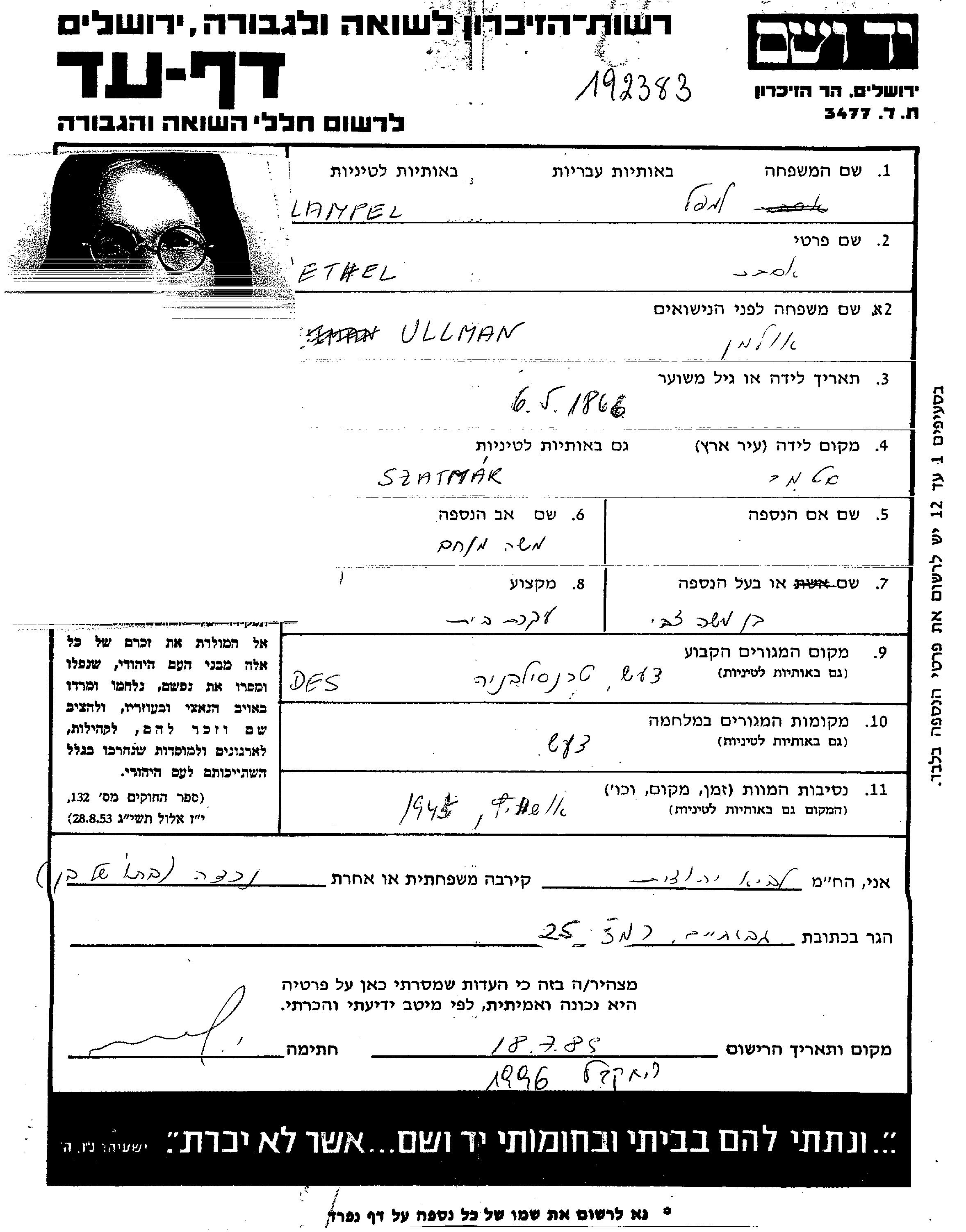 יד ושם - המפעל להנצחת השמות בדפי עד