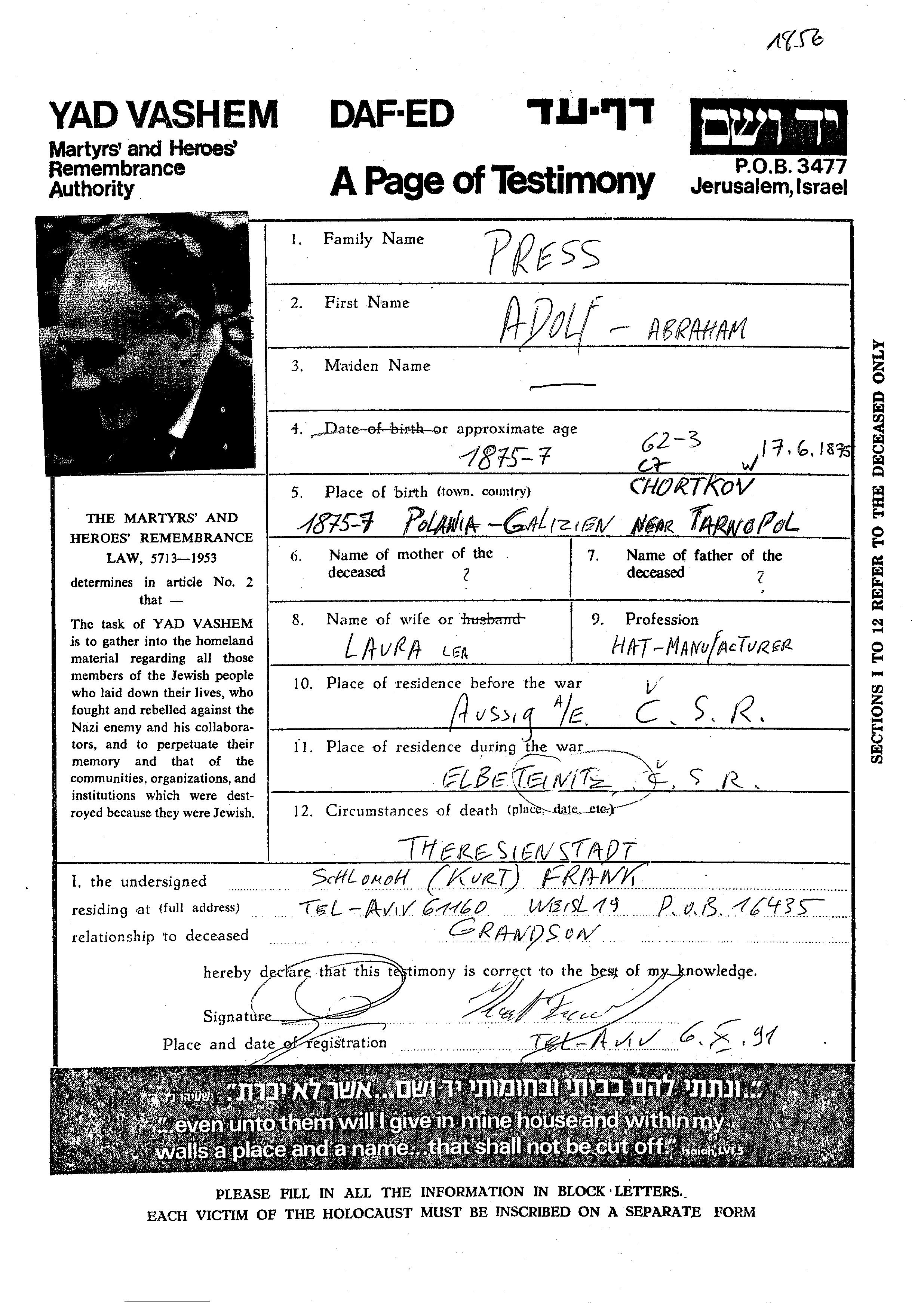 Press | Abraham אדולף | 1875 | Usti nad Labem, צ'כוסלובקיה | Photos |