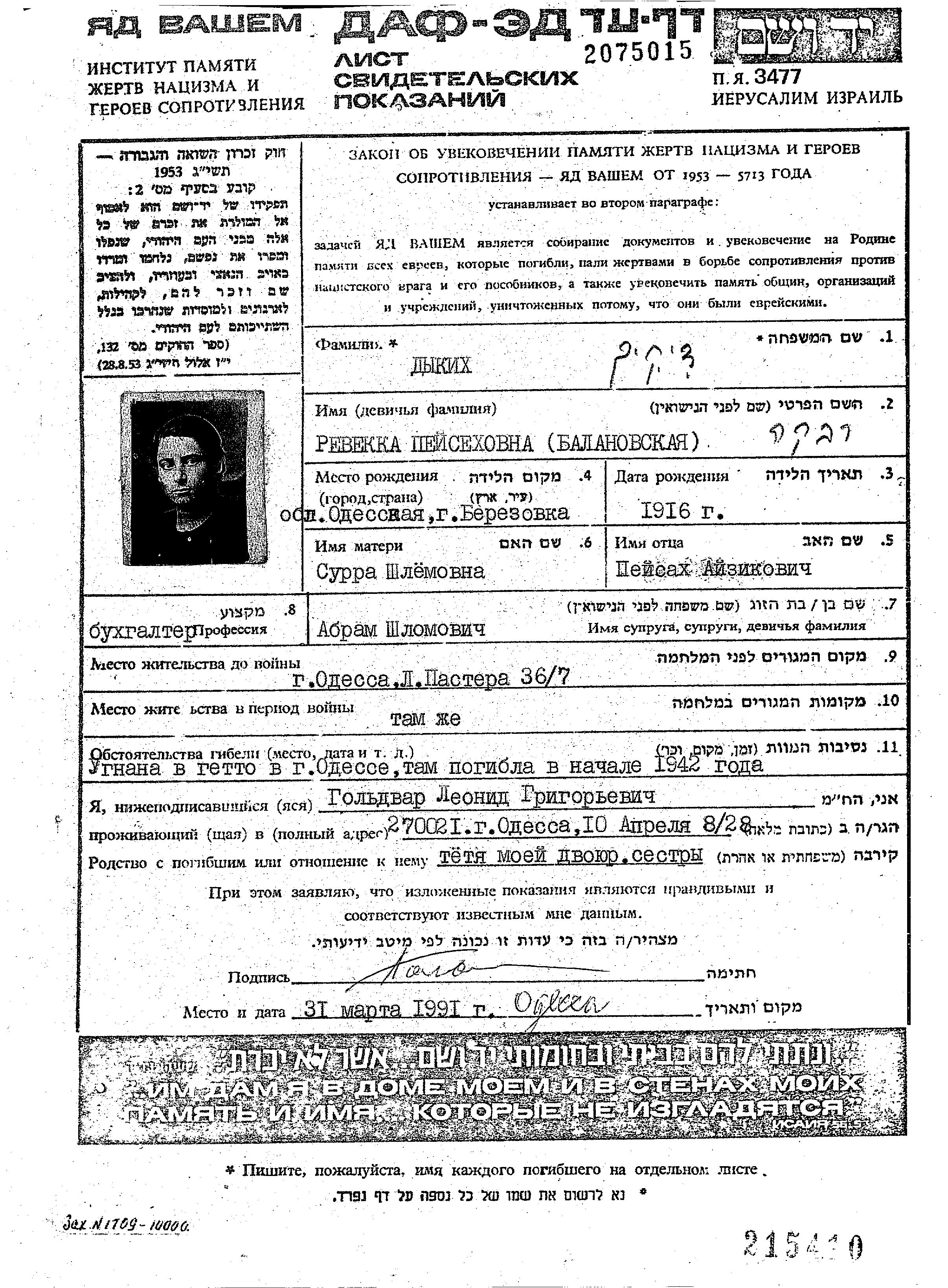 Dykikh Reveka 1916 Odessa, אוקראינה (ברה"מ) דף-עד