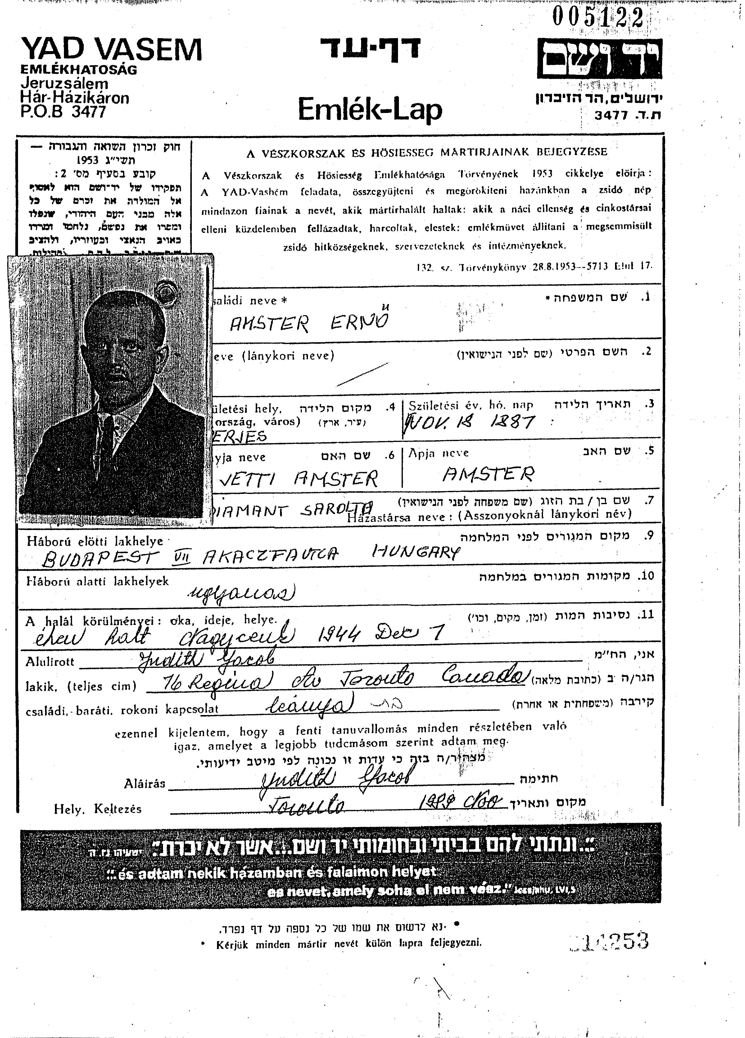 ארנו נרצח בשואה. מקום המוות: Nagycenk שבהונגריה בשנת 07/12/1944.