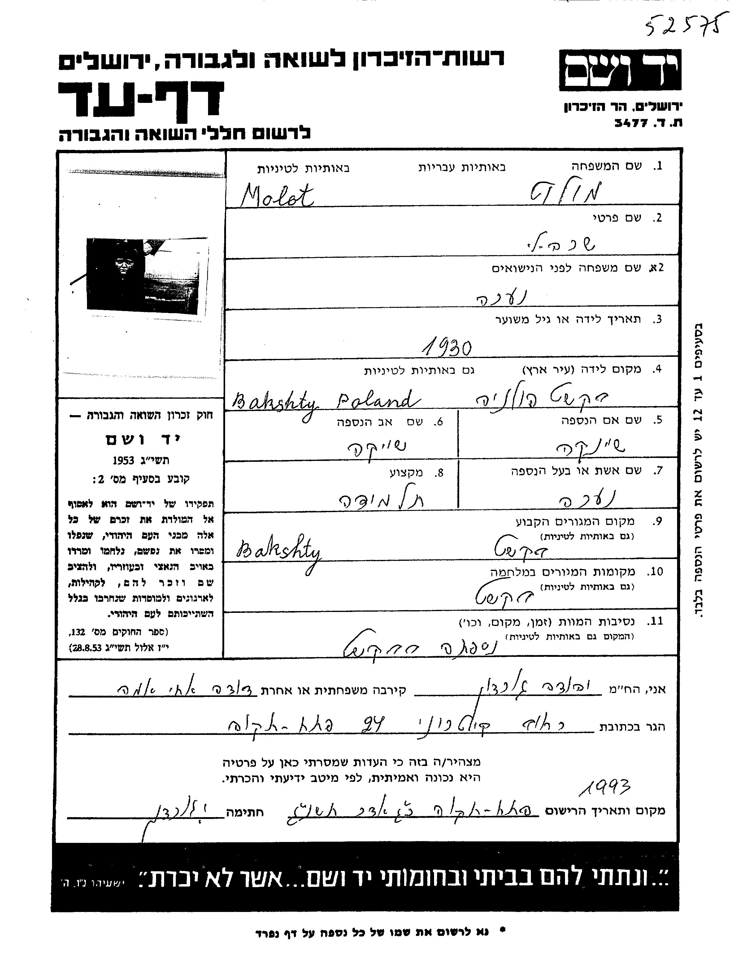יד ושם - המפעל להנצחת השמות בדפי עד