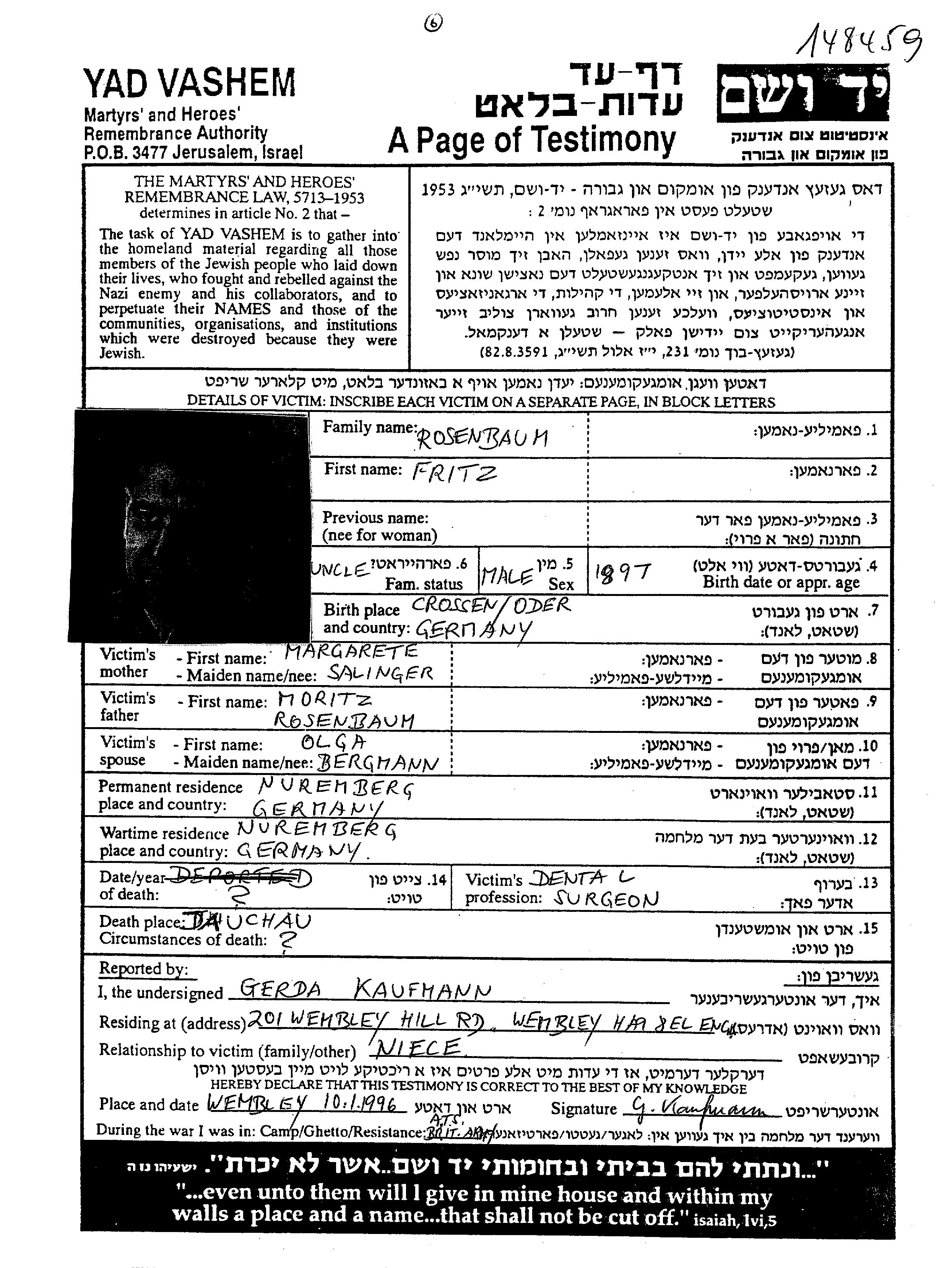 Rosenbaum פריץ 1897 Nuernberg, גרמניה דף-עד