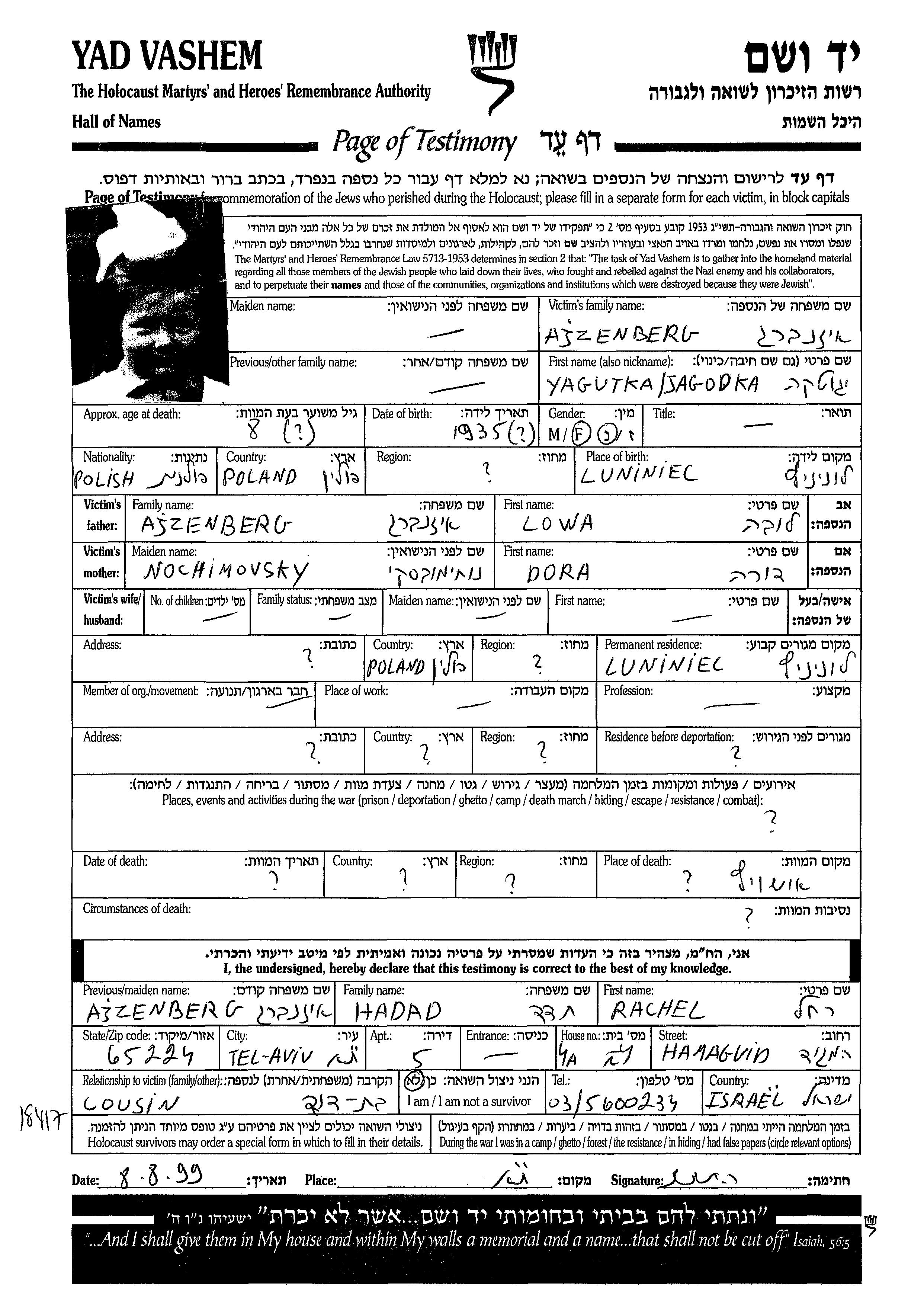 עיר/כפר, גטו/מחנה או אתר רצח או מחוז/אזור או מדינה. שם מקום ניתן לחפש רק בא-ב לטיני.