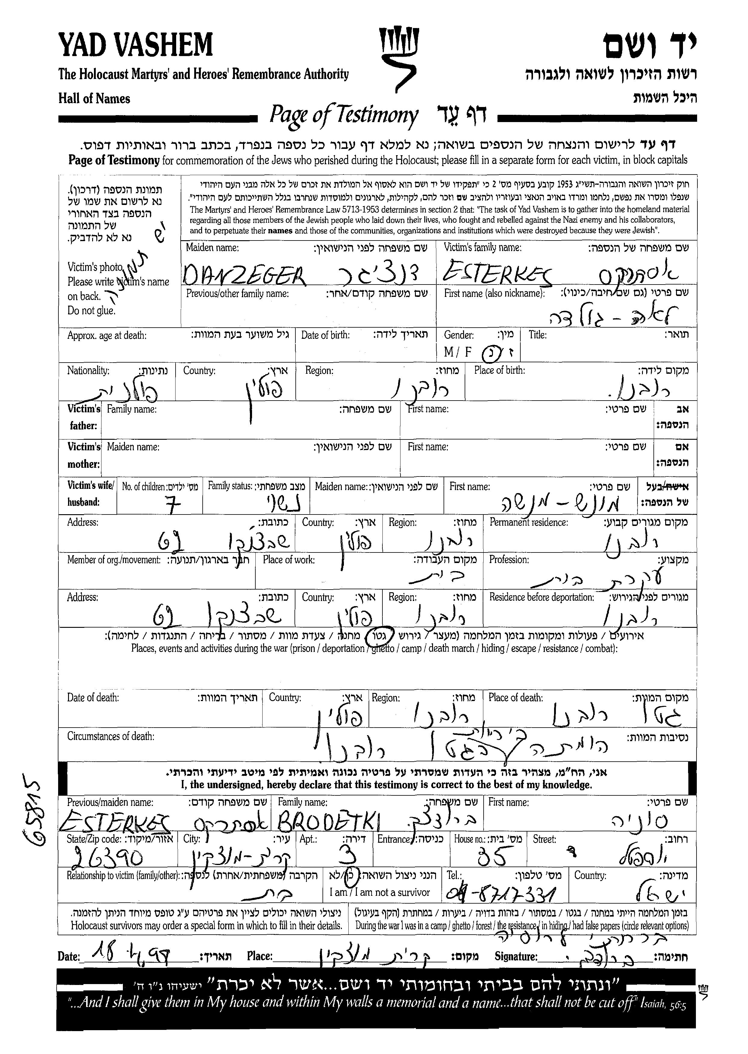 Esterkes | לאה גולדה | Rowno, פולין | דף-עד | |
