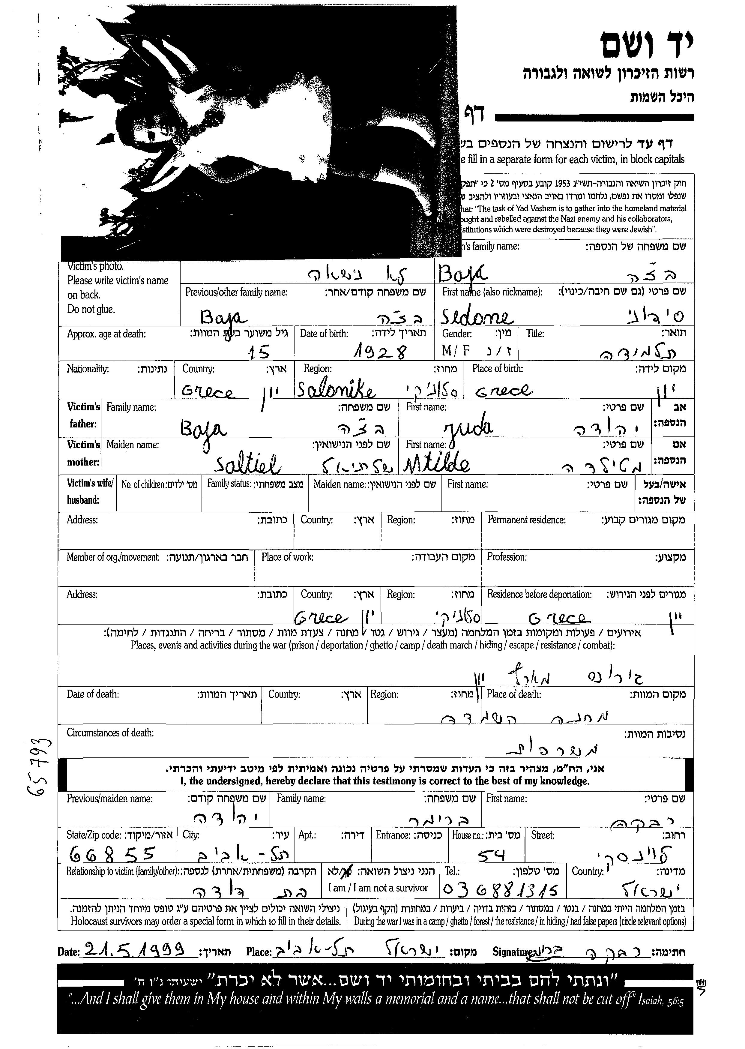 Sedone Baja נולדה בThessaloniki שביון בשנת 1928.