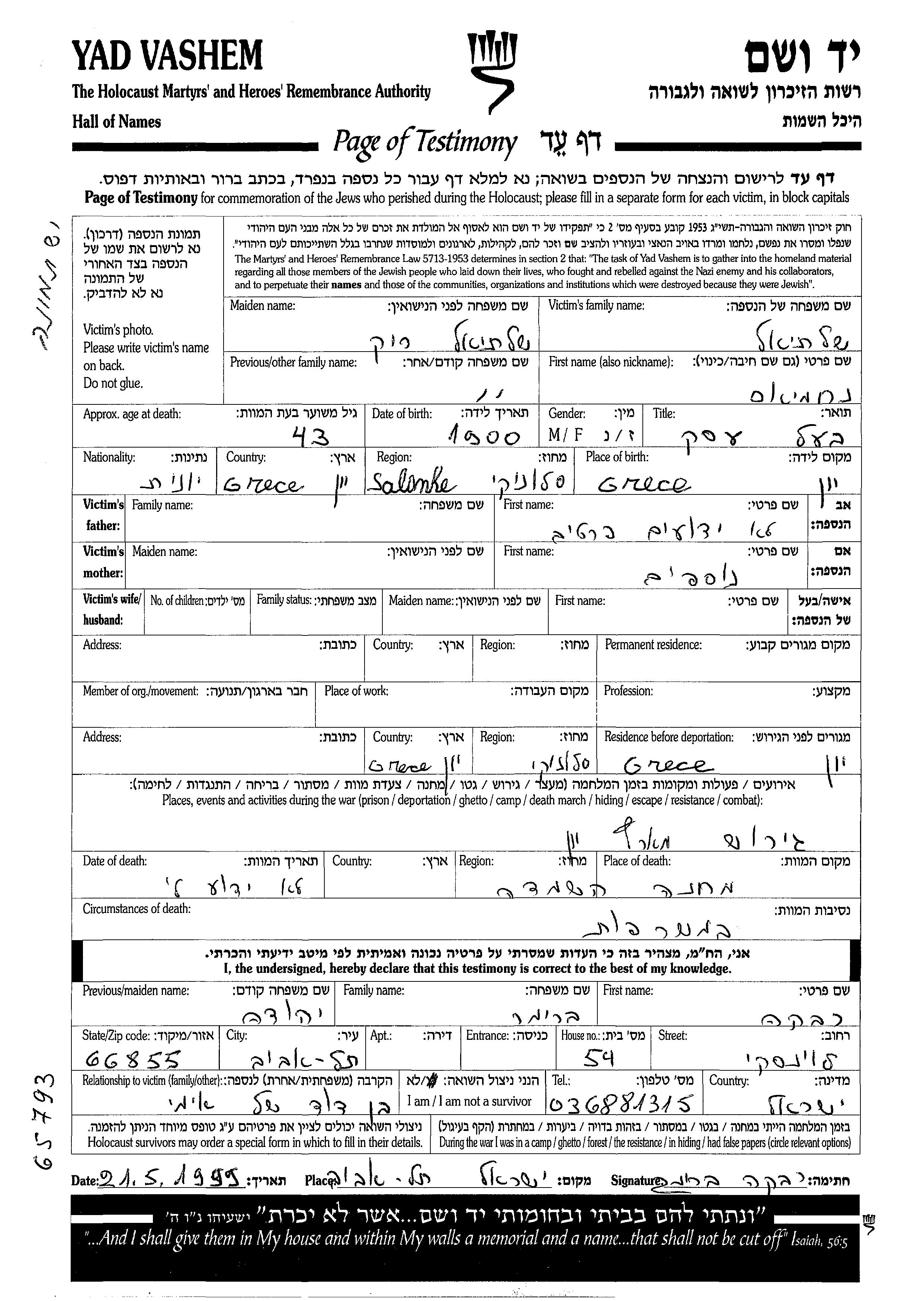 יד ושם - המפעל להנצחת השמות בדפי עד