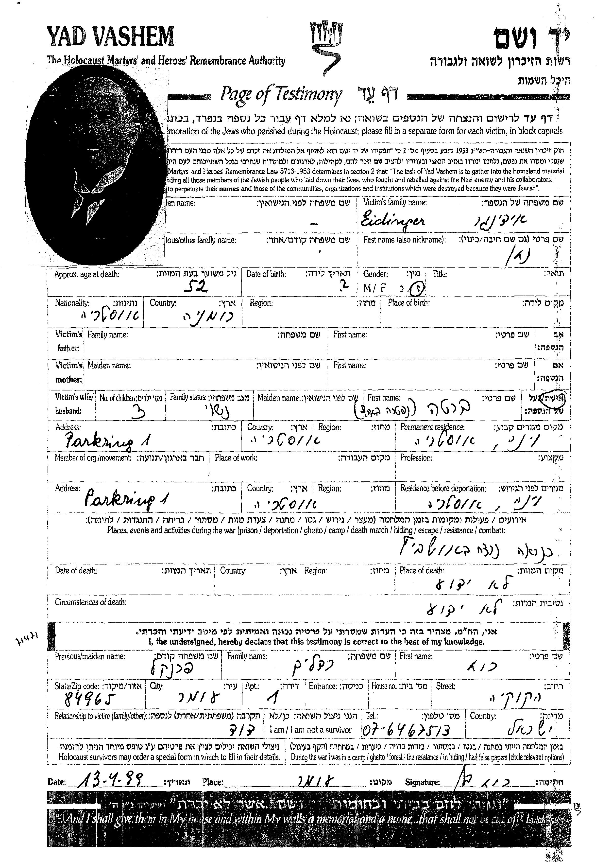 יד ושם - המפעל להנצחת השמות בדפי עד