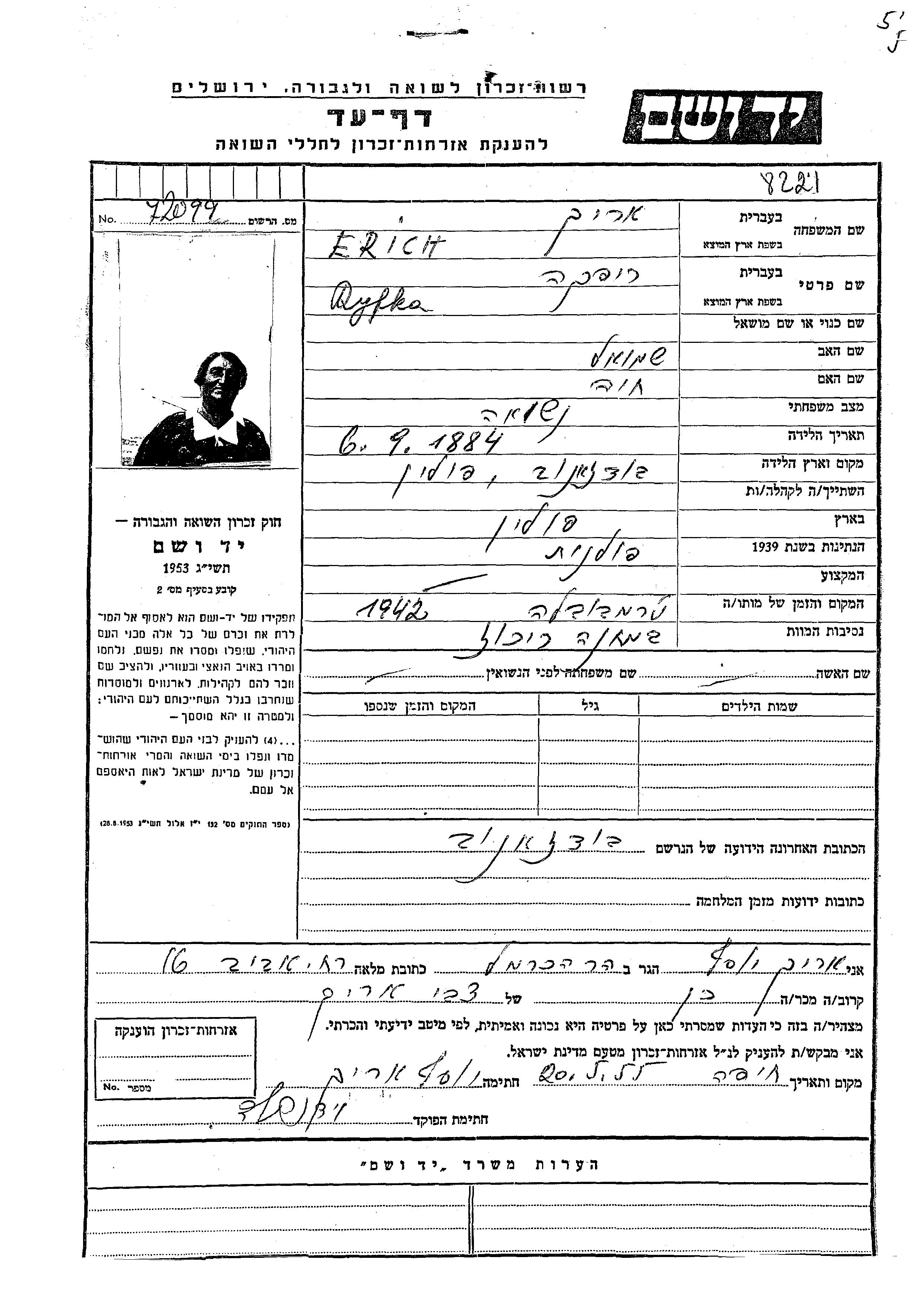 יד ושם - המפעל להנצחת השמות בדפי עד