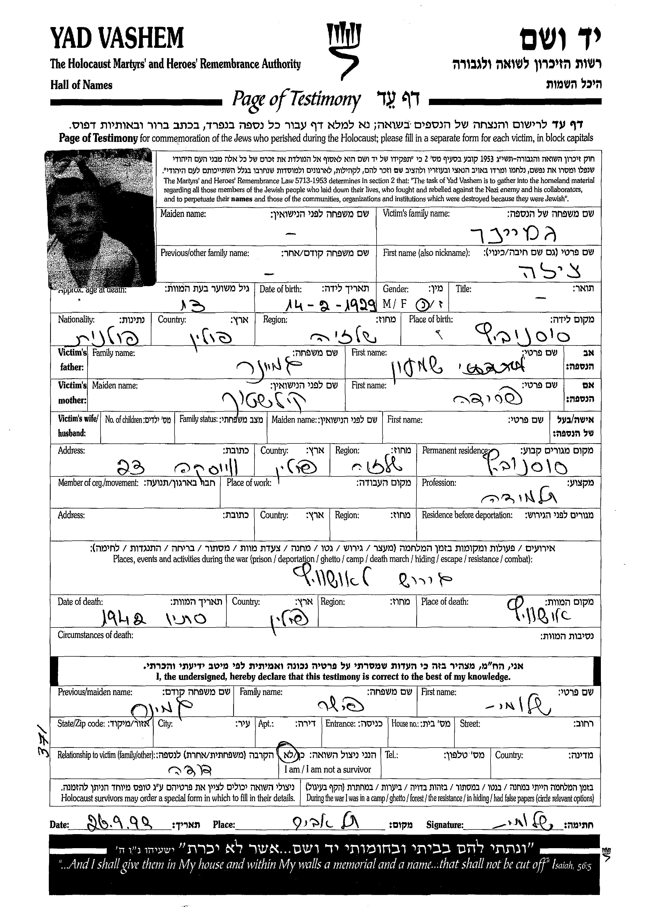 יד ושם - המפעל להנצחת השמות בדפי עד