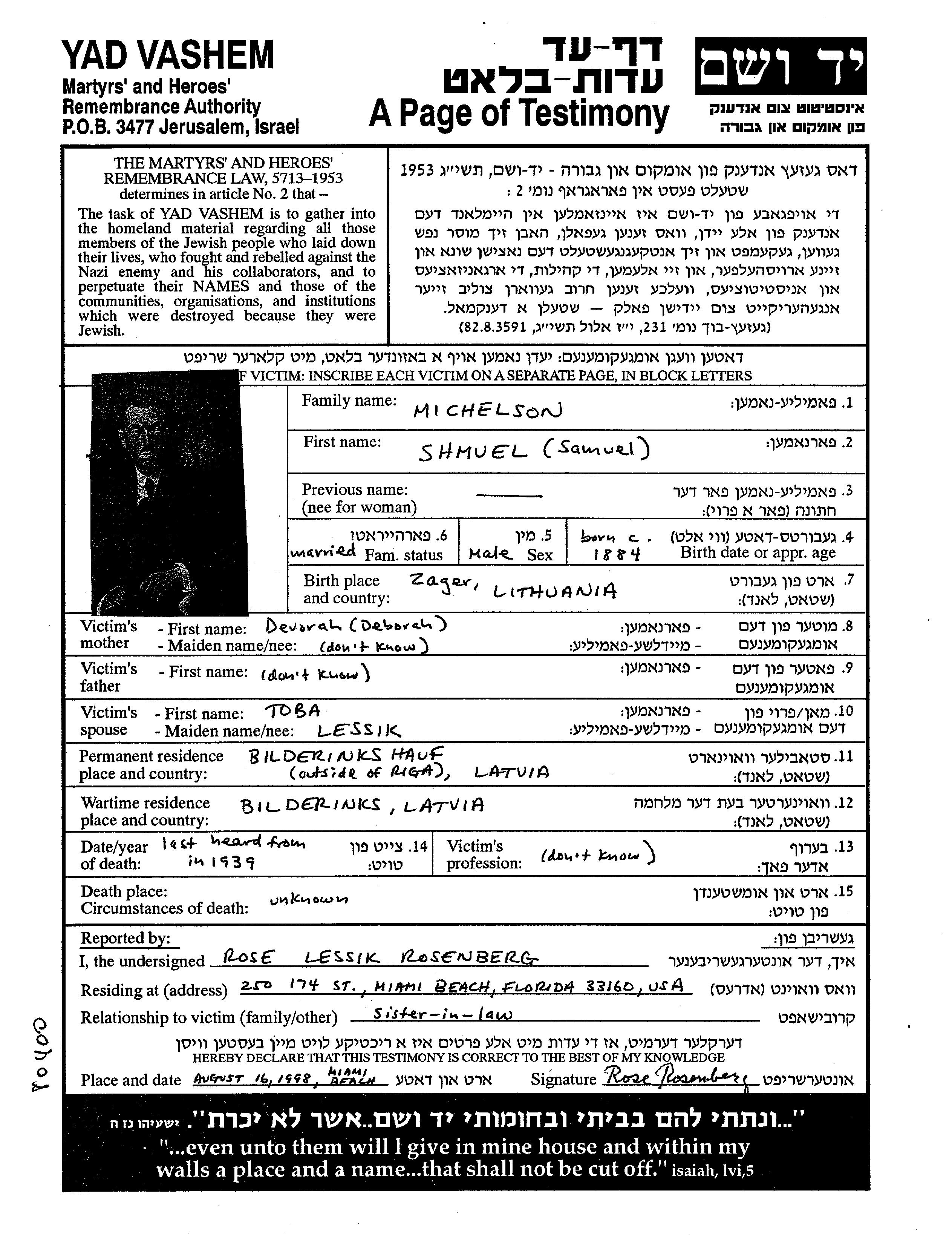 | Michelson | סמואל | 1884 | Bilderlingshof, לטביה | דף-עד |