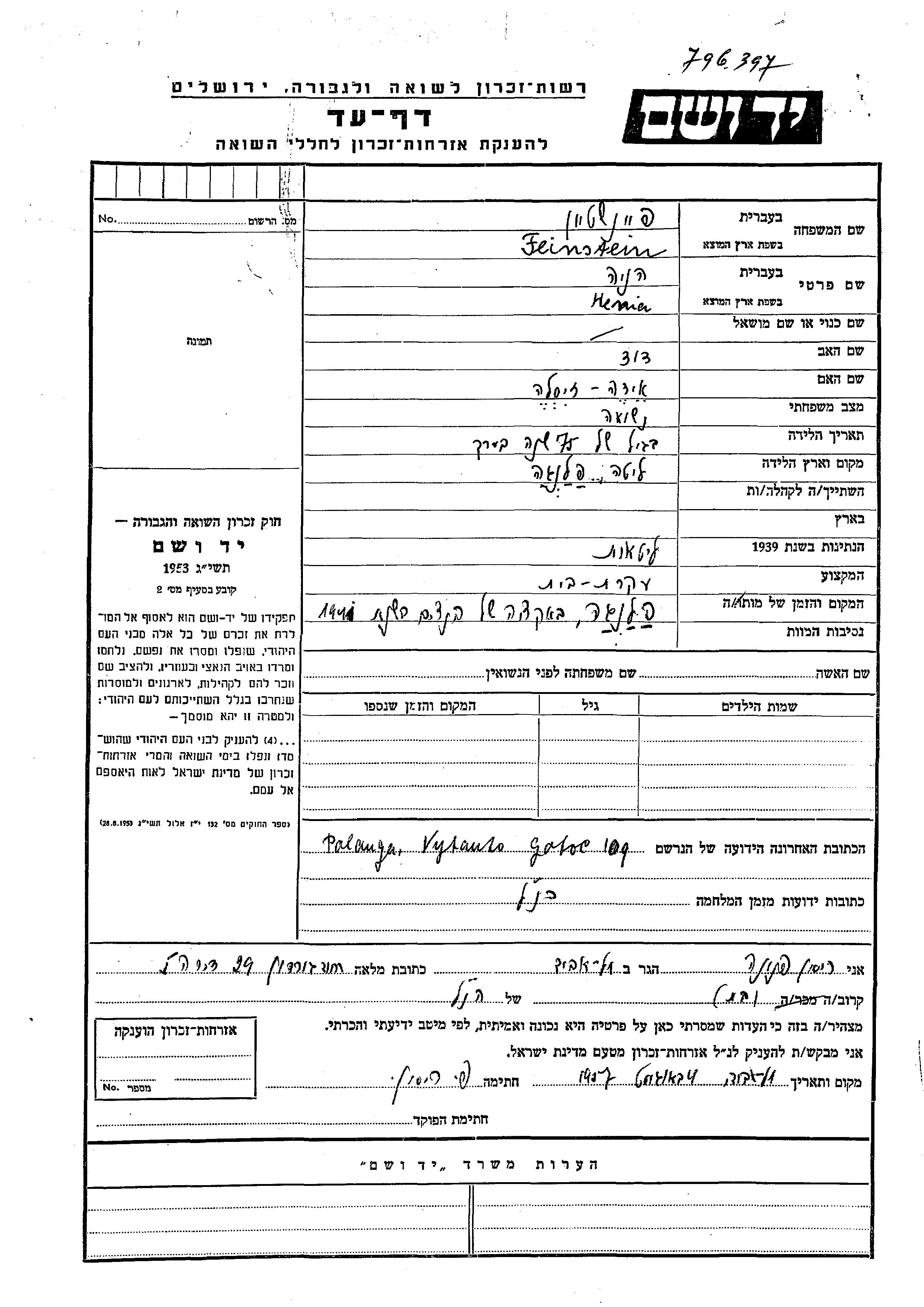 יד ושם - המפעל להנצחת השמות בדפי עד