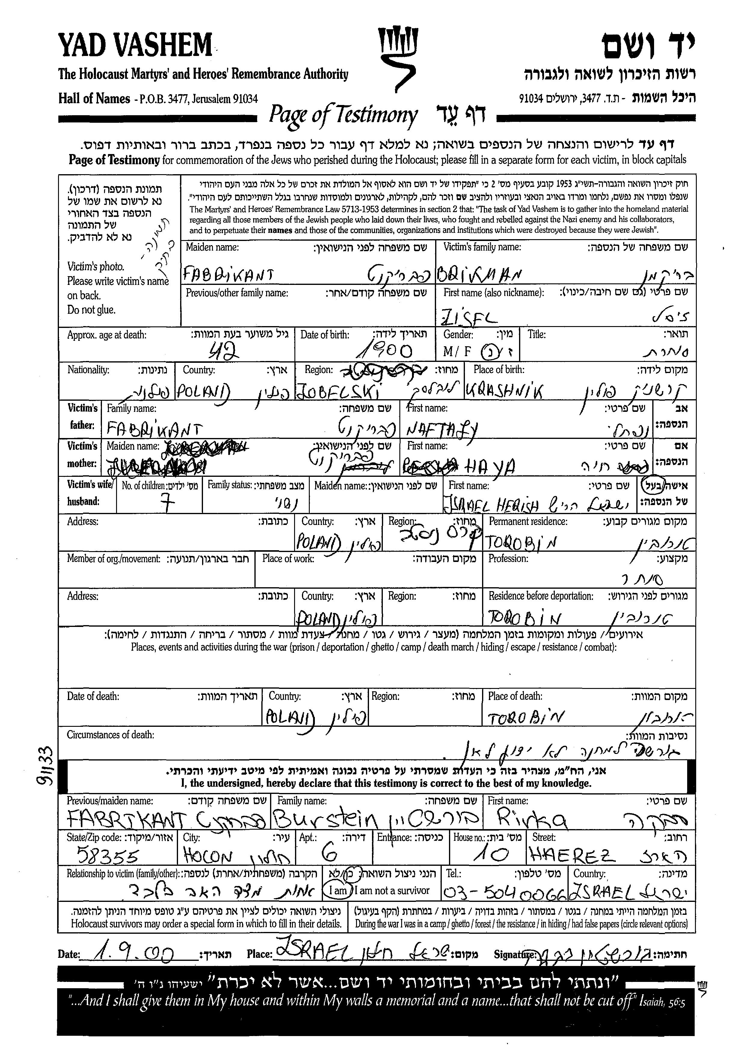 יד ושם - המפעל להנצחת השמות בדפי עד