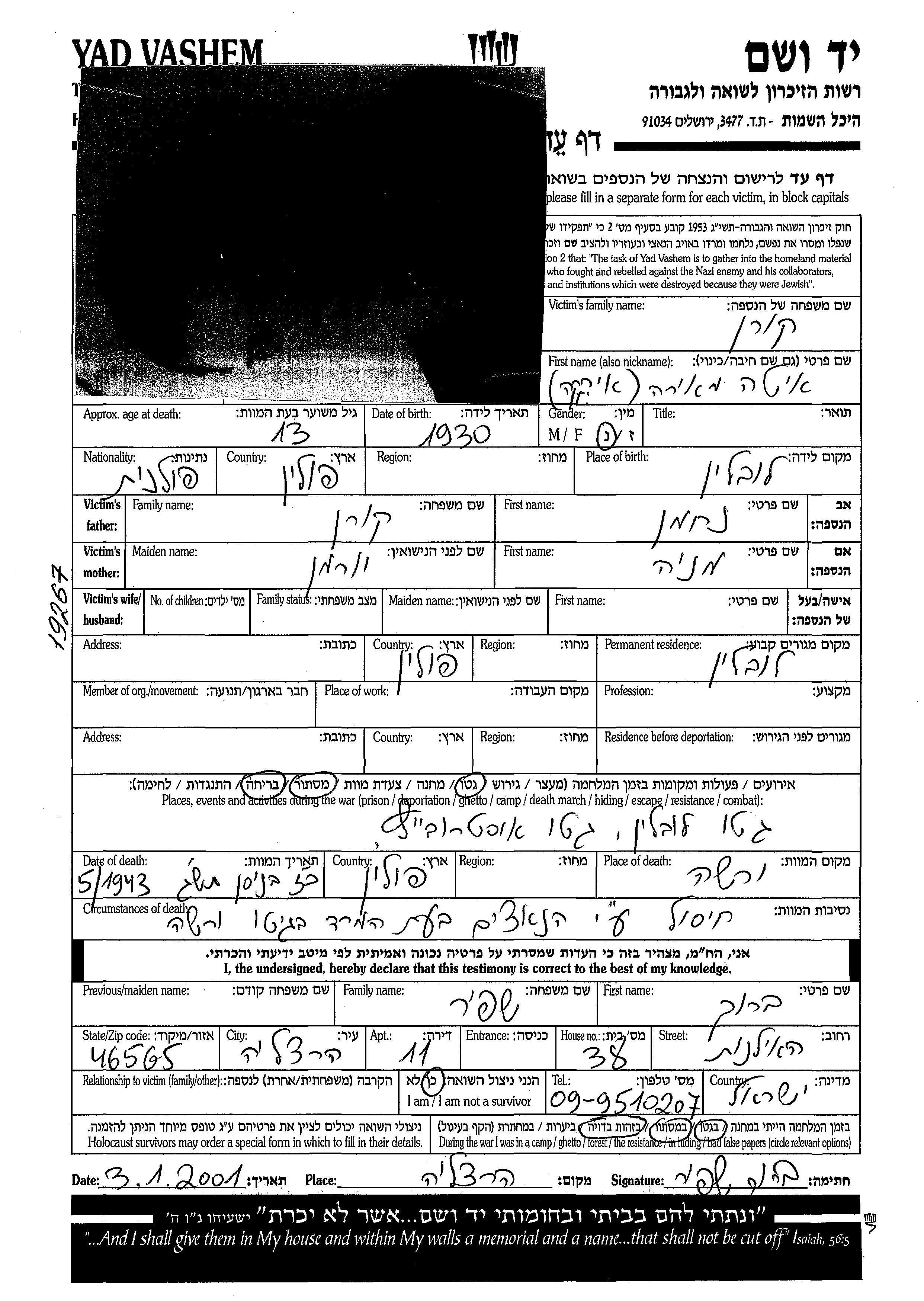 יד ושם - המפעל להנצחת השמות בדפי עד