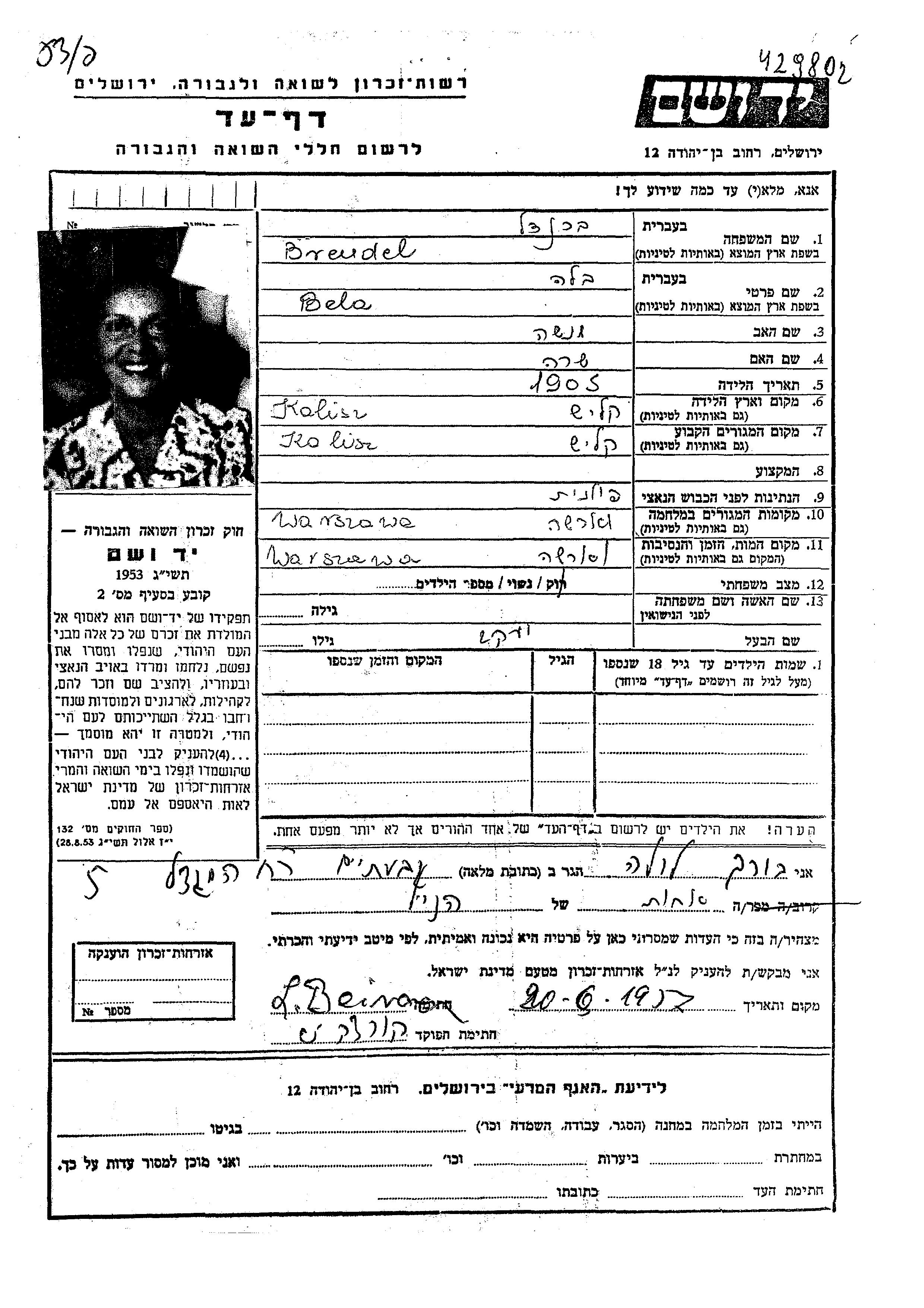 בלה נרצחה בשואה. מקום המוות: Warszawa שבפולין.
