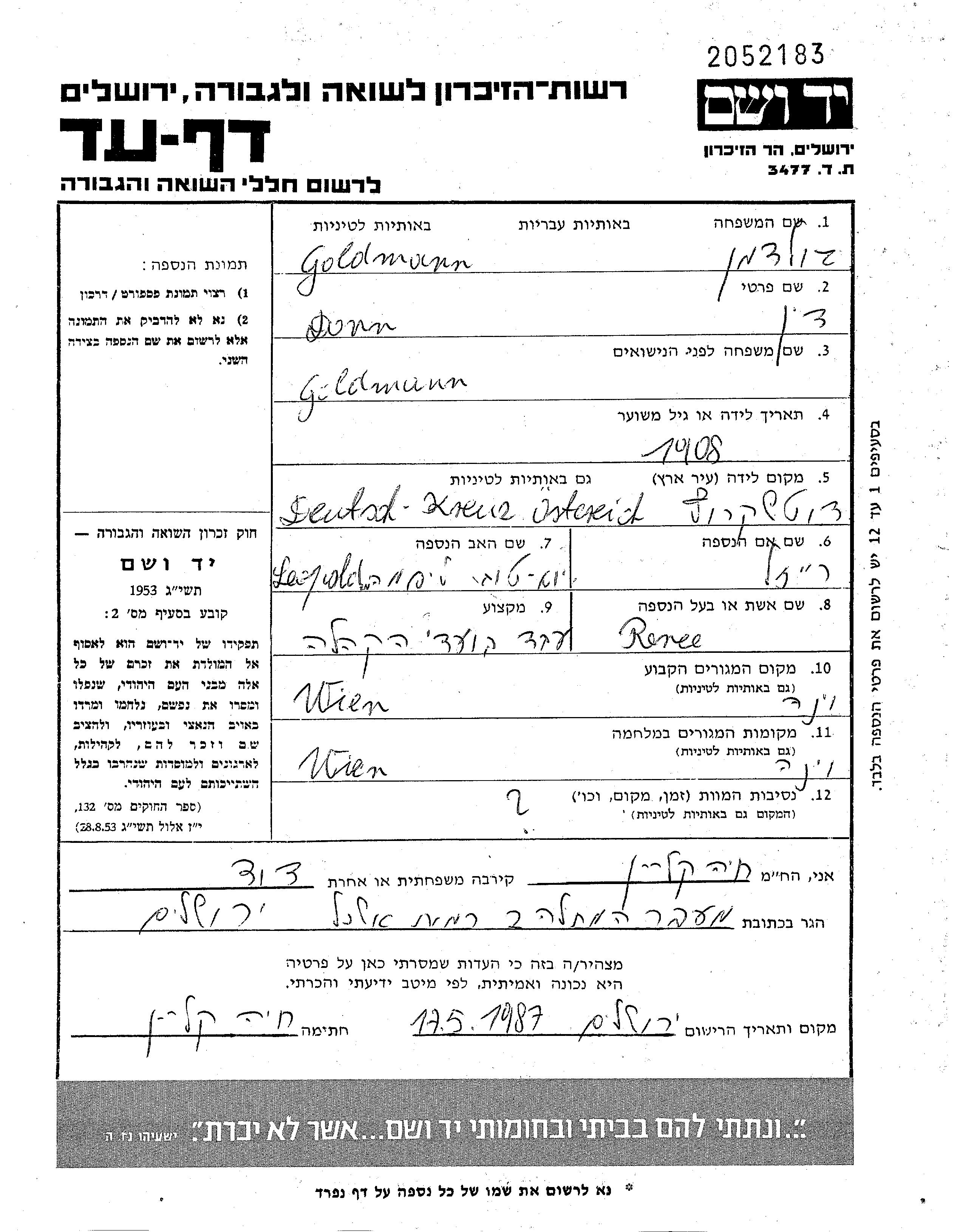 גולדמן | דן | 1905 | Vina, אוסטריה | דף-עד |