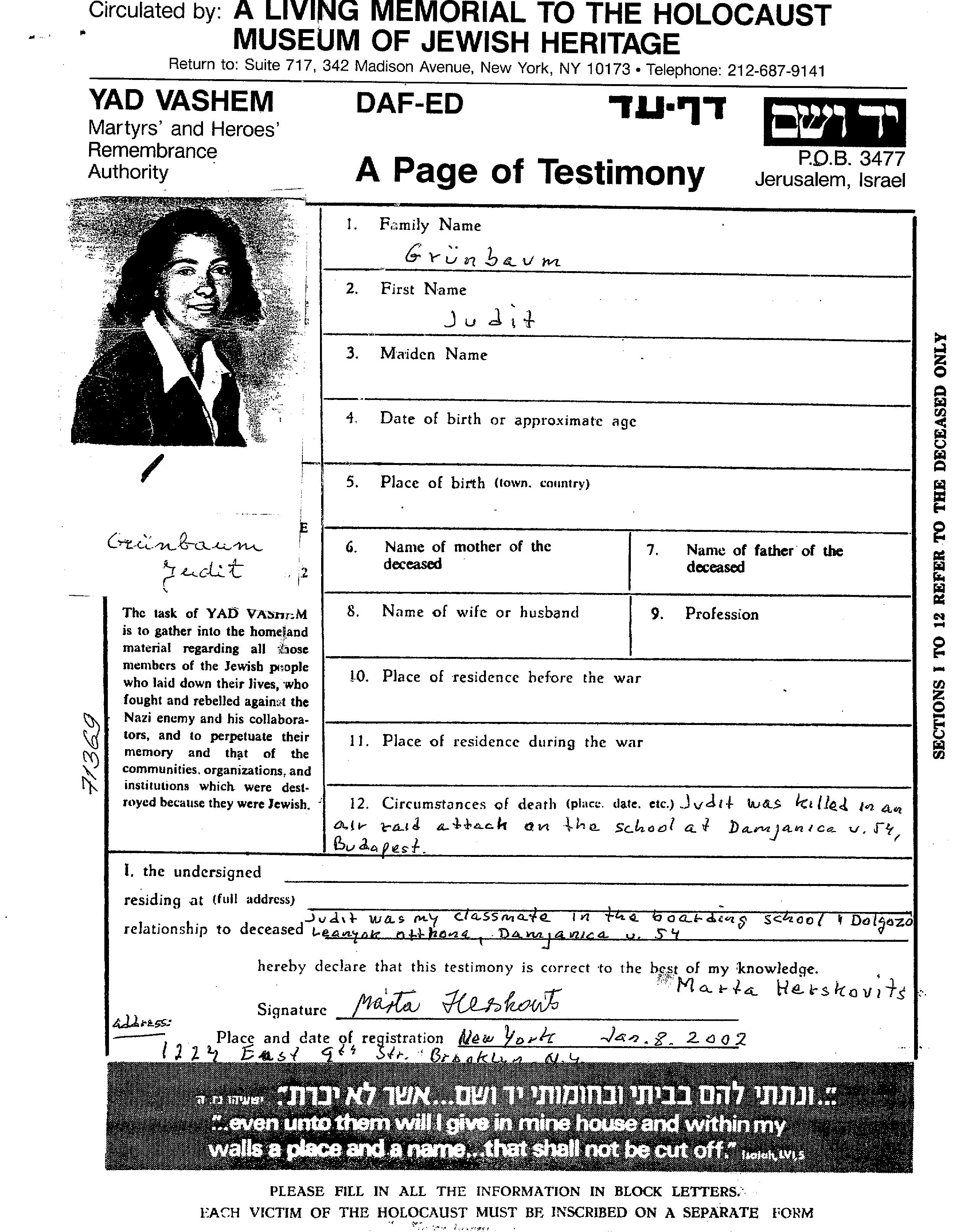 חיפוש שם מוסר דף העד. חיפוש לפי כל שם פרטי, כולל כינוי או שם חיבה