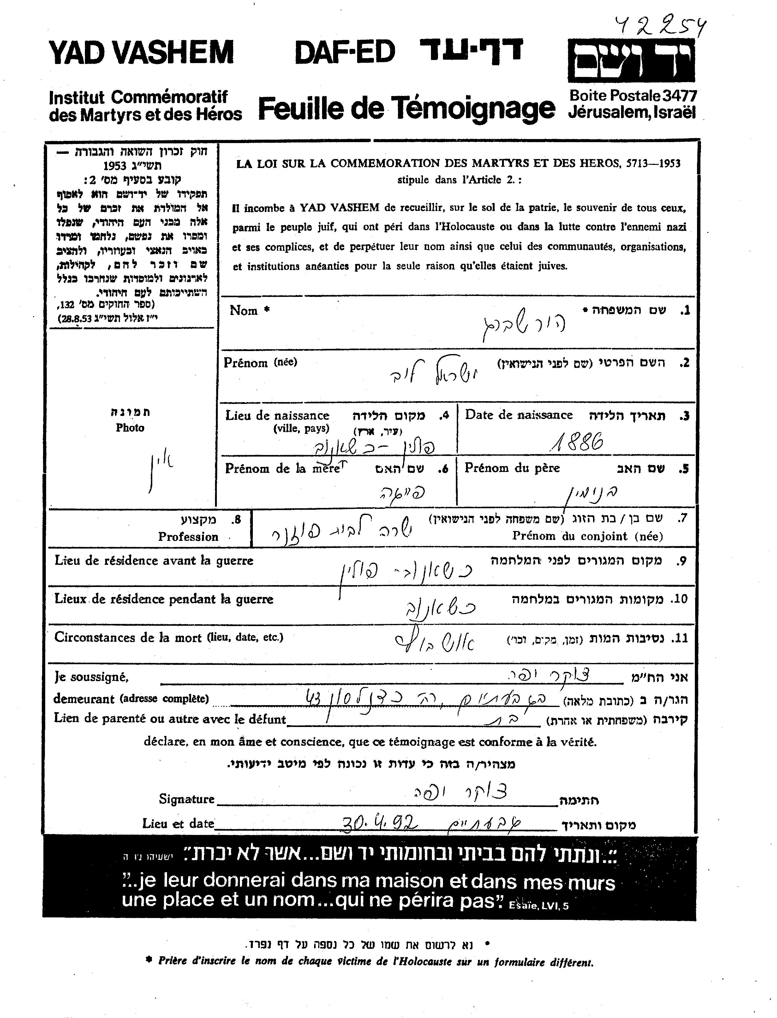 יד ושם - המפעל להנצחת השמות בדפי עד